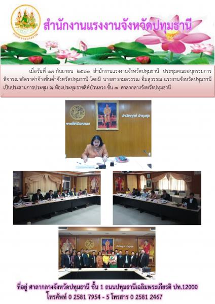สำนักงานแรงงานจังหวัดปทุมธานี ประชุมคณะอนุกรรมการพิจารณาอัตราค่าจ้างขั้นต่ำจังหวัดปทุมธานี