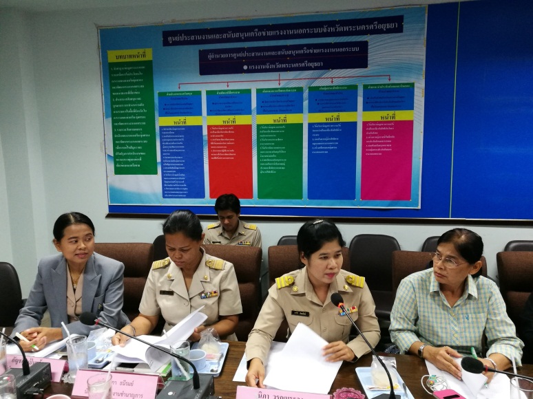 วันจันทร์ที่ 20 พฤศจิกายน 2560 เวลา 10.00 น. สำนักงานแรงงานจังหวัดพระนครศรีอยุธยา ได้จัดประชุมประจำเดือนแกนนำอาสาสมัครแรงงานระดับอำเภอ ประจำเดือนพฤศจิกายน 2560 พร้อมเจ้าหน้าที่พี่เลี้ยงหน่วยงานในสังกัดกระทรวงแรงงาน เพื่อแจ้งข่าวสารประชาสัมพันธ์ภารกิจของกระทรวงแรงงานให้อาสาสมัครแรงงานรับทราบและปฏิบัติงานในพื้นที่ ณ ห้องประชุมสำนักงานแรงงานจังหวัดพระนครศรีอยุธยา ชั้น 3 อาคาร 4 ชั้น