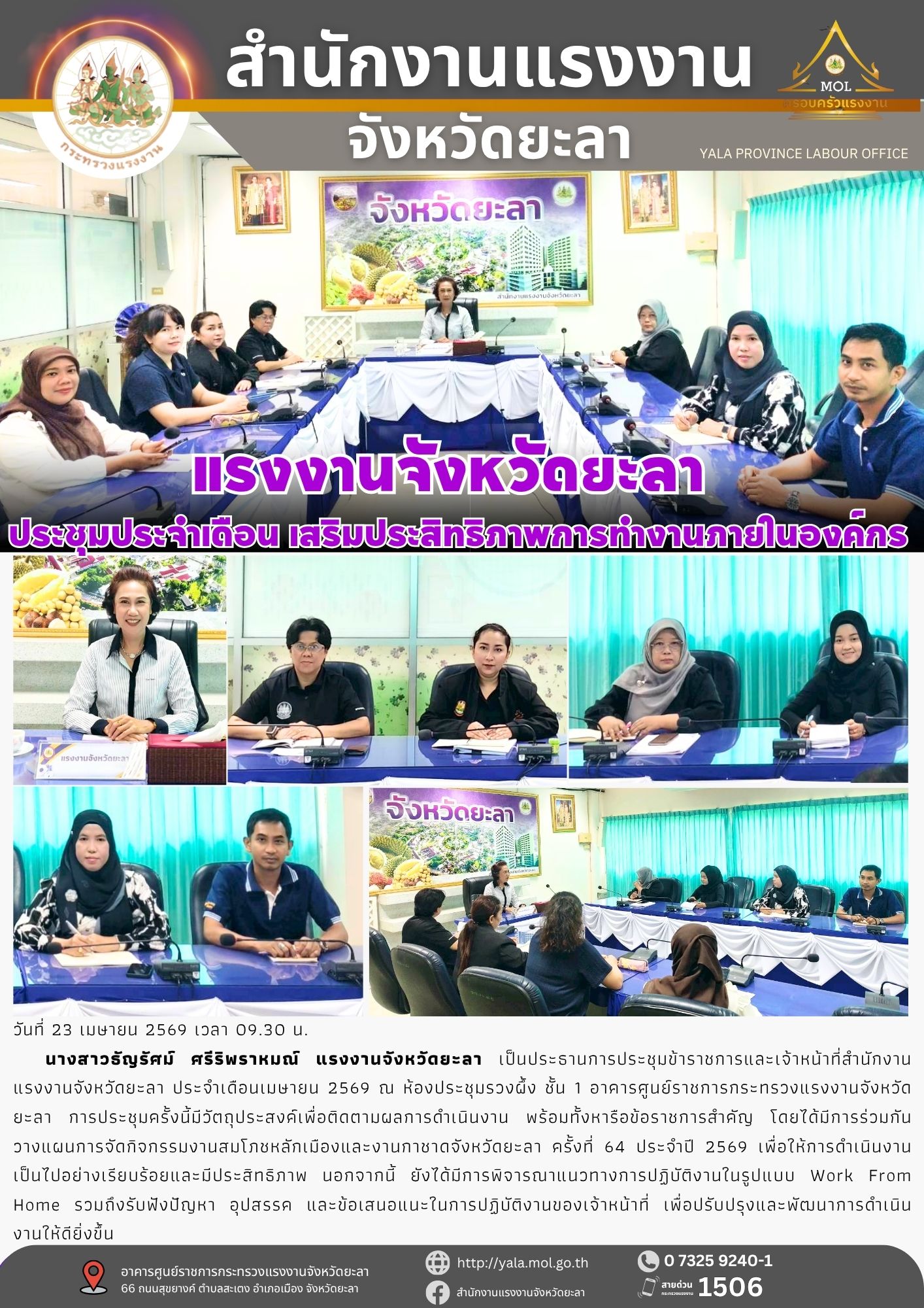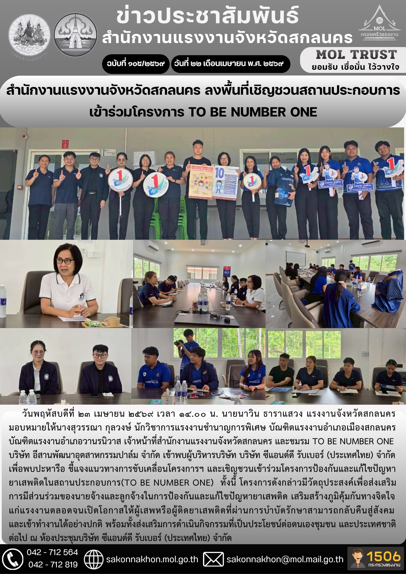 วันที่ 19 มกราคม 2569 09.00 น. นางสาวรุ่งทิพย์ จั่นทอง แรงงานจังหวัดพระนครศรีอยุธยา มอบหมายให้นางสาวสมาพร สว่างศรี นักวิชาการแรงงานชำนาญการพิเศษ พร้อมด้วยบัณฑิตแรงงาน เข้าร่วมประธานอาสาสมัครแรงงาน โครงการสื่อสารสร้างการรับรู้แรงงานไทยร่วมต้านภัยยาเสพติด เพื่อชี้แจงทำความเข้าใจ สนับสนุนข้อมูลวิชาการ สื่นต้นแบบ ส่งเสริมสนับสนุนการดำเนินงานให้คำปรึกษาแนะนำเกี่ยวกับประมวลกฎหมายและกฎหมายอื่น ๆ ที่เกี่ยวข้อง ตลอดจนจัดเวทีประชุมแลกเปลี่ยนสรุปผลการดำเนินงาน เพื่อเป็นฐานข้อมูลสร้างเครือข่ายความร่วมมือป้องกันและแก้ไขปัญหายาเสพติดในสถานประกอบการต่อไป ณ โรงแรมกรุงศรีริเวอร์ จังหวัดพะนครศรีอยุธยา