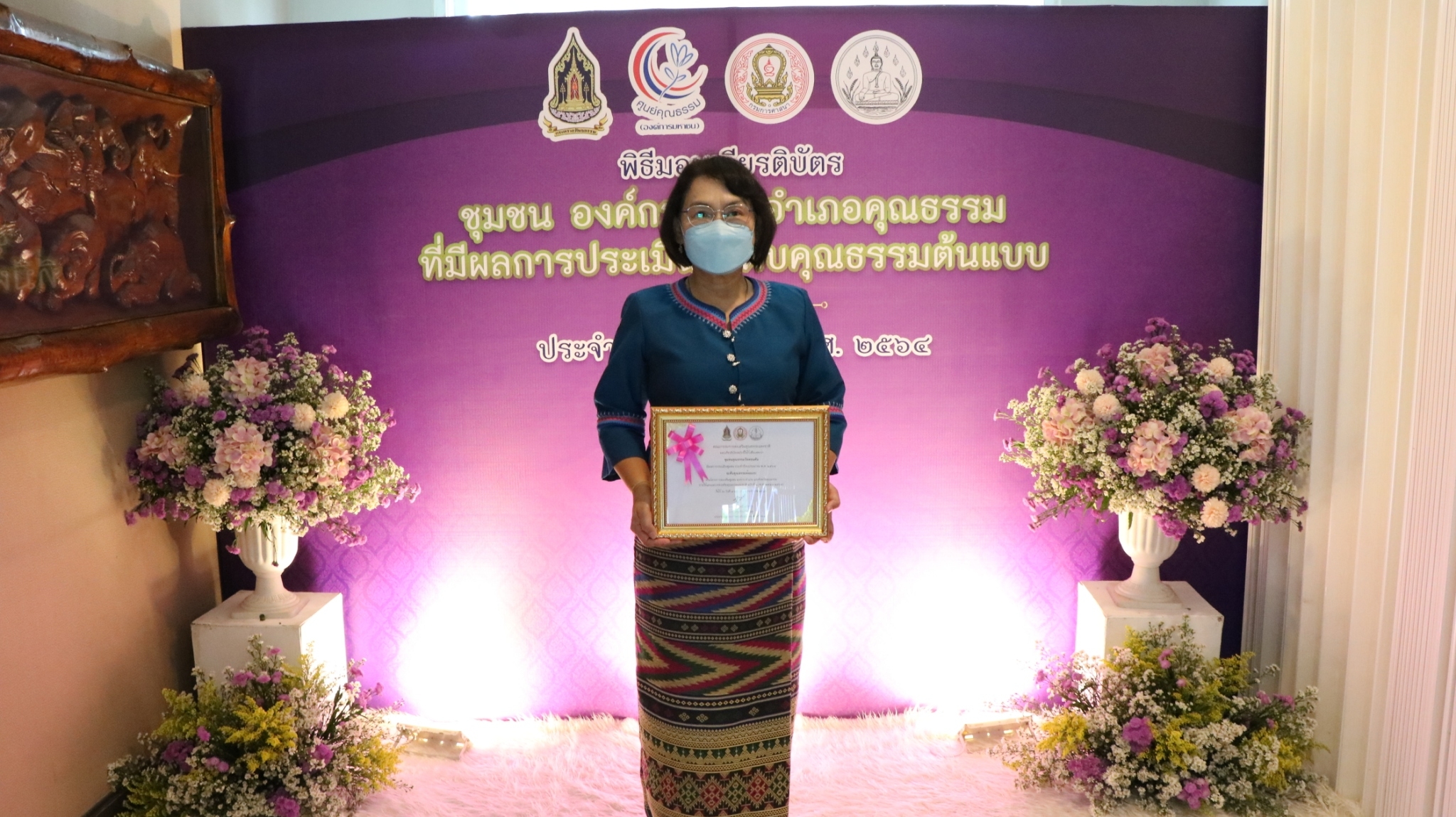 วันพุธที่ 25 พฤษภาคม 2565 เวลา 08.30 น. นายศักดิ์ฤทธิ์ สลักคำ ผู้ว่าราชการจังหวัดพะเยา เป็นประธานในพิธีมอบเกียรติบัตรชุมชน องค์กร และอำเภอคุณธรรม ที่มีผลการประเมินระดับ คุณธรรมต้นแบบ ประจำปีงบประมาณ พ.ศ. 2564 ภายใต้โครงการขับเคลื่อนแผนแม่บทส่งเสริมคุณธรรมแห่งชาติ ฉบับที่ 1 (พ.ศ. 2559-2565) ณ โรงแรมเคเอ็ม กว๊านพะเยา ต.เวียง อ.เมือง จ.พะเยา เพื่อประกาศยกย่องและเชิดชูเกียรติชุมชน องค์กร และอำเภอคุณธรรมในการขับเคลื่อนแผนแม่บทฯ ไปสู่การปฎิบัติอย่างมีประสิทธิภาพและประสิทธิผลสูงสุด มุ่งเน้นการส่งเสริมคุณธรรมสู่ประชาชน เพื่อให้เกิดสังคมคุณธรรม ในการนี้ นางสาวกมลวรรณ บุญยืน แรงงานจังหวัดพะเยา เข้าร่วมพิธีรับเกียรติบัตรชุมชน องค์กร และอำเภอคุณธรรม ที่มีผลการประเมินระดับ คุณธรรมต้นแบบ ประจำปีงบประมาณ พ.ศ. 2564 เพื่อแสดงให้เห็นว่า สำนักงานแรงงานจังหวัดพะเยา เป็น “องค์กรคุณธรรม”ตามผลการประเมินระดับ คุณธรรมต้นแบบ ประจำปีงบประมาณ พ.ศ. 2564 ภายใต้โครงการขับเคลื่อนแผนแม่บทส่งเสริมคุณธรรมแห่งชาติ ฉบับที่ 1 (พ.ศ. 2559-2565)