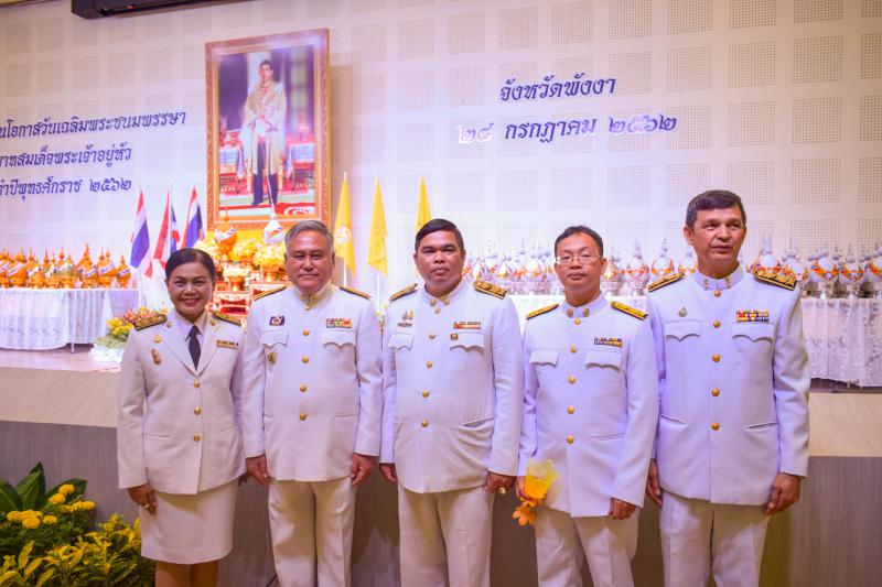 วันนี้ (28 ก.ค. 62) เวลา 19.00 น. นางวิมุตติยา อาวุธเทวินทร์ แรงงานจังหวัดพังงา ร่วมด้วยหัวหน้าส่วนสังกัดกระทรวงแรงงานจังหวัดพังงา นางเมทิกา สัตตานุสรณ์ จัดหางานจังหวัดพังงา นางพรสวรรค์ แสนใจยา ประกันสังคมจังหวัดพังงา นายชำนาญ จุลสุวรรณ สวัสดิการและคุ้มครองแรงงานจังหวัดพังงา และจ่าเอก ประยงค์ บุญช่วย ผู้อำนวยการสำนักพัฒนาฝีมือแรงงานพังงา ร่วมพิธีถวายเครื่องราชสักการะและพิธีจุดเทียนถวายพระพรชัยมงคล เนื่องในโอกาสเฉลิมพระชนมพรรษาพระบาทสมเด็จพระเจ้าอยู่หัว ประจำปีพุทธศักราช 2562 ณ หอประชุมศูนย์ราชการจังหวัดพังงา โดยนายศิริพัฒ พัฒกุล ผู้ว่าราชการจังหวัดพังงา เป็นประธานในพิธี อีกทั้งยังร่วมวางพานพุ่มทอง พุ่มเงิน เพื่อสำนึกในพระมหากรุณาธิคุณที่ทรงมีต่อปวงชนชาวไทย