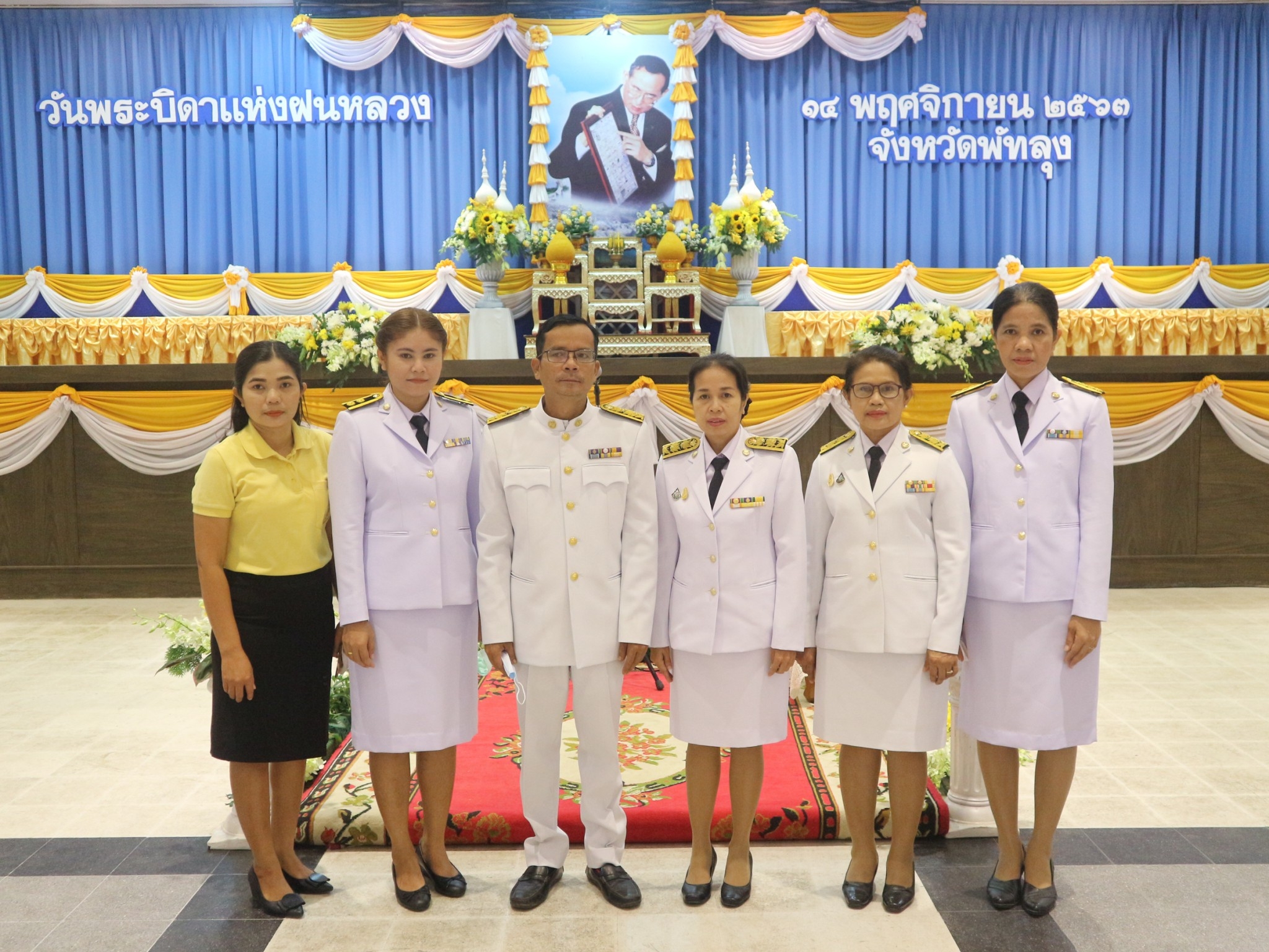 วันที่ 14 พฤศจิกายน 2563 เวลา 09.00 น นายกู้เกียรติ วงศ์กระพันธุ์ ผู้ว่าราชการจังหวัดพัทลุง เป็นประธานพิธีวางพานพุ่มดอกไม้สดถวายสักการะน้อมรำลึกในพระมหากรุณาธิคุณพระบาทสมเด็จพระบรมชนกาธิเบศร มหาภูมิพลอดุลยเดชมหาราช บรมนาถบพิตร เนื่องในวันพระบิดาแห่งฝนหลวง ประจำปี 2563 โดยนายปรีชา แก้วมณี แรงงานจังหวัดพัทลุง พร้อมด้วยหัวหน้าส่วนราชการ ข้าราชการ เจ้าหน้าที่หน่วยงานสังกัดกระทรวงแรงงานร่วมพิธีฯ โดยพร้อมเพรียงกัน ณ หอประชุมจังหวัดพัทลุง