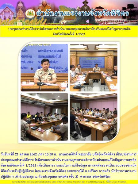 สำนักงานแรงงานจังหวัดพิจิตร ร่วมประชุมคณะทำงานโต๊ะข่าวรับผิดชอบการดำเนินงานตามยุทธศาสตร์การป้องกันและแก้ไขปัญหายาเสพติดจังหวัดพิจิตรครั้งที่ 1/2563