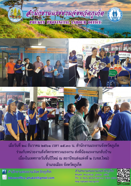 สำนักงานแรงงานจังหวัดภูเก็ต ร่วมกับหน่วยงานสังกัดกระทรวงแรงงาน ส่งพี่น้องแรงงานกลับบ้าน