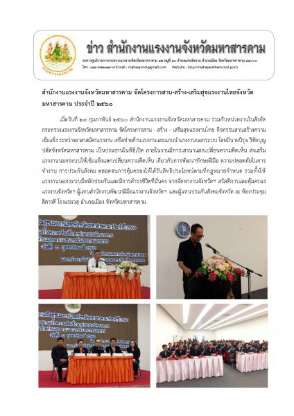 สำนักงานแรงงานจังหวัดมหาสารคาม จัดโครงการสาน-สร้าง-เสริมสุขแรงงานไทยจังหวัดมหาสารคาม ประจำปี 2560