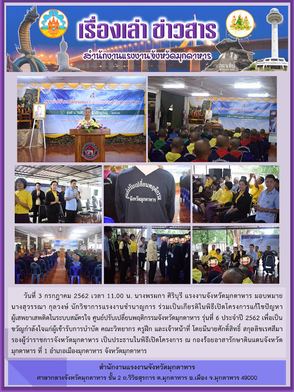 สำนักงานแรงงานจังหวัดมุกดาหาร ร่วมเป็นเกียรติในพิธีเปิดโครงการแก้ไขปัญหาผู้เสพยาเสพติดในระบบสมัครใจ ศูนย์ปรับเปี่ยนพฤติกรรมจังหวัดมุกดาหาร รุ่นที่ 6 ณ กองร้อยอาสารักษาดินแดนจังหวัดมุกดาหาร ที่ 1 อำเภอเมืองมุกดาหาร จังหวัดมุกดาหาร