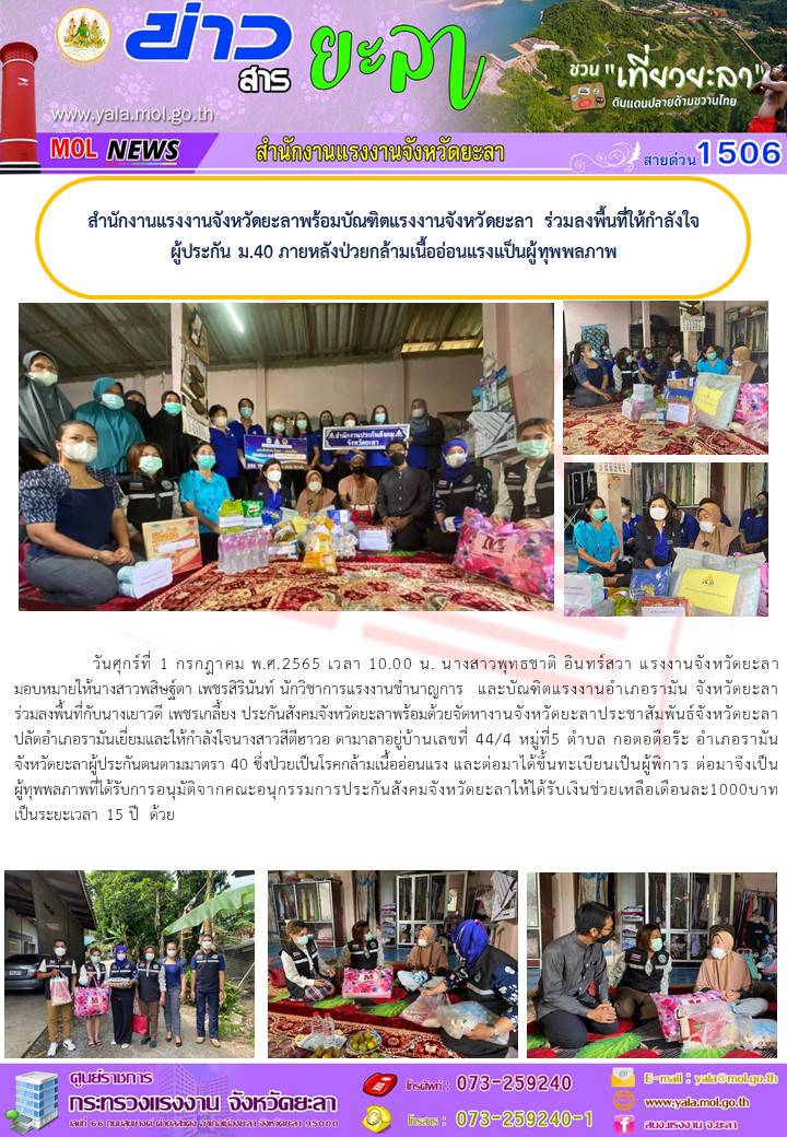 สำนักงานแรงงานจังหวัดยะลา พร้อมบัณฑิตแรงงานยะลาร่วมลงพื้นที่ให้กำลังใจผู้ประกัน ม.40 ภายหลังป่วยกล้ามเนื้ออ่อนแรงเป็นผู้ทุพพลภาพ