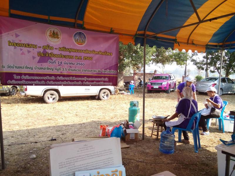 วันนี้ (14 มีนาคม 2560) สำนักงานแรงงานจังหวัดยโสธร จัดโครงการสาน – สร้าง – เสริมสุขแรงงานไทยจังหวัดยโสธร ร่วมกับจังหวัดเคลื่อนที่ "เพิ่มรอยยิ้ม เติมความสุข ให้คนยโสธร" ได้นำการสาธิตประกอบอาชีพอิสระ หลักสูตร การทำผลิตภัณฑ์จากถั่วลิสง เพื่อให้คนว่างงาน ผู้สนใจ ได้มีรับรู้และสามารถนำเป็นอาชีพเสริมได้ ณ วัดบ้านเหล่าใหญ่ และโรงเรียนบ้านเหล่าใหญ่ หมู่ 3 และ 5 ต.ม่วง อ.มหาชนะขัย จ.ยโสธร