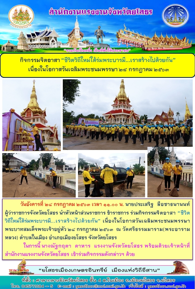 สำนักงานแรงงานจังหวัดยโสธร เข้าร่วมกิจกรรมเฉลิมพระเกียรติพระบาทสมเด็จพระเจ้าอยู่หัว เนื่องในโอกาสวันเฉลิมพระชนมพรรษา 28 กรกฎาคม 2563 ในกิจกรรมจิตอาสาพัฒนาฯ