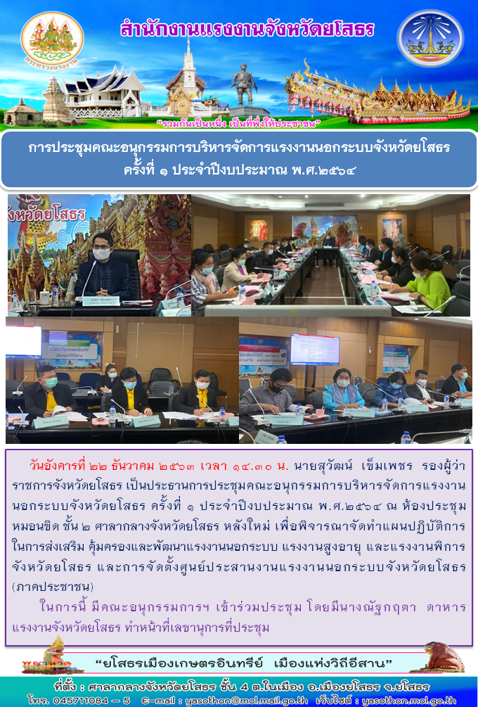 สำนักงานแรงงานจังหวัดยโสธร เข้าร่วมประชุมคณะอนุกรรมการบริหารจัดการแรงงานนอกระบบ จังหวัดยโสธร ครั้งที่ 1 ประจำปีงบประมาณ พ.ศ.2564