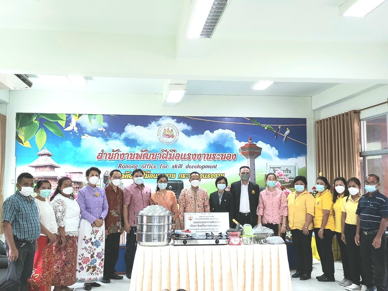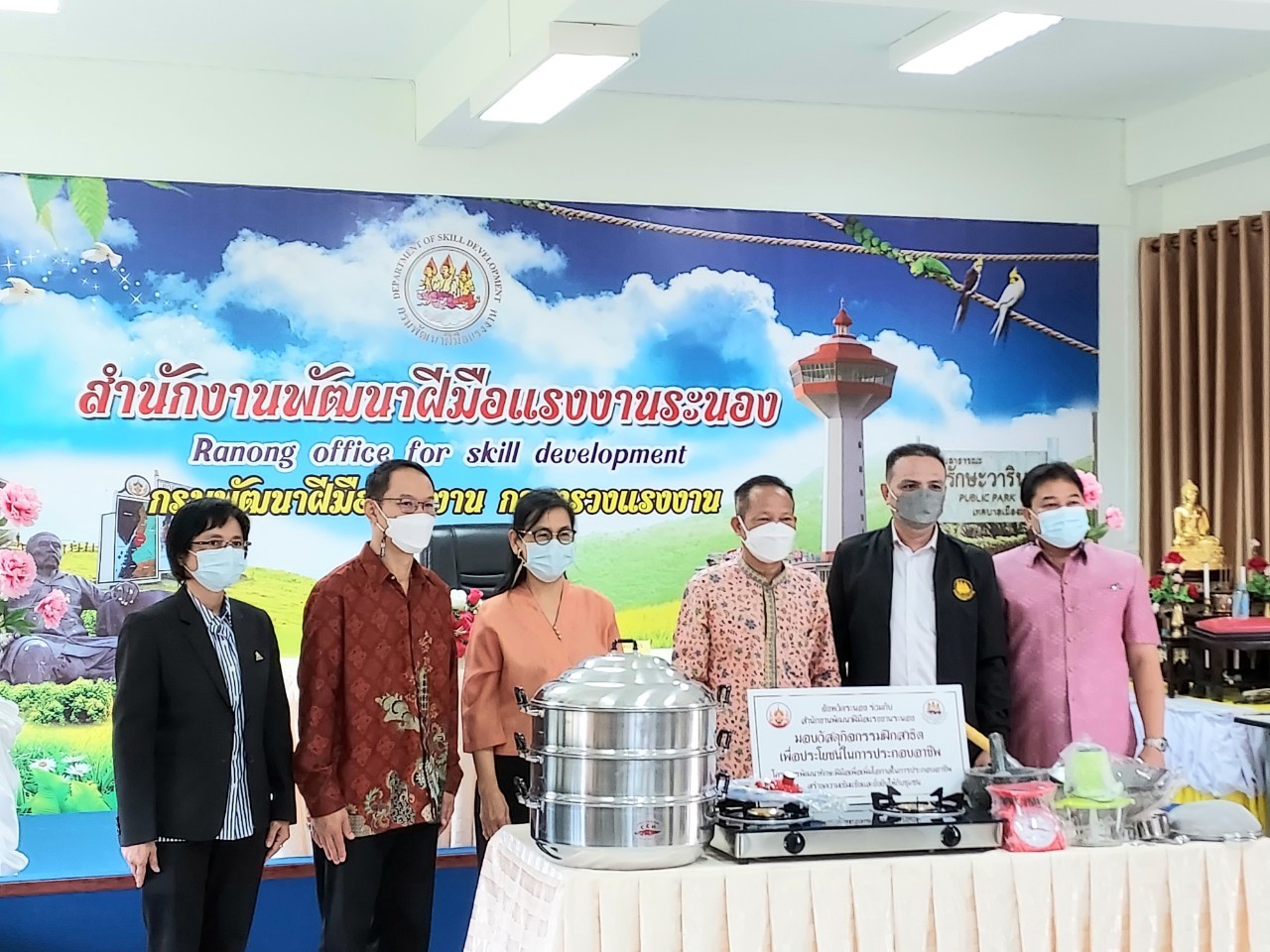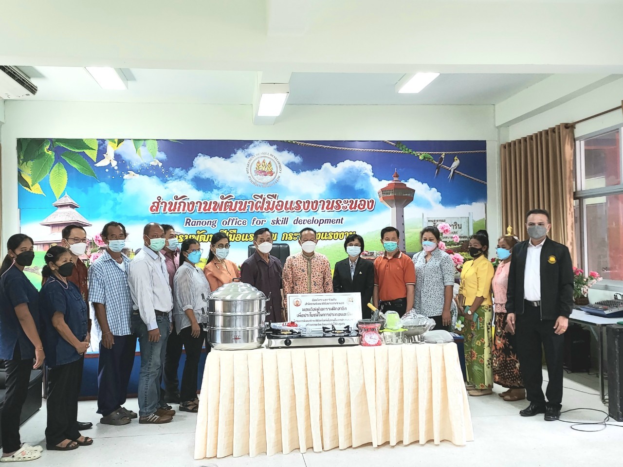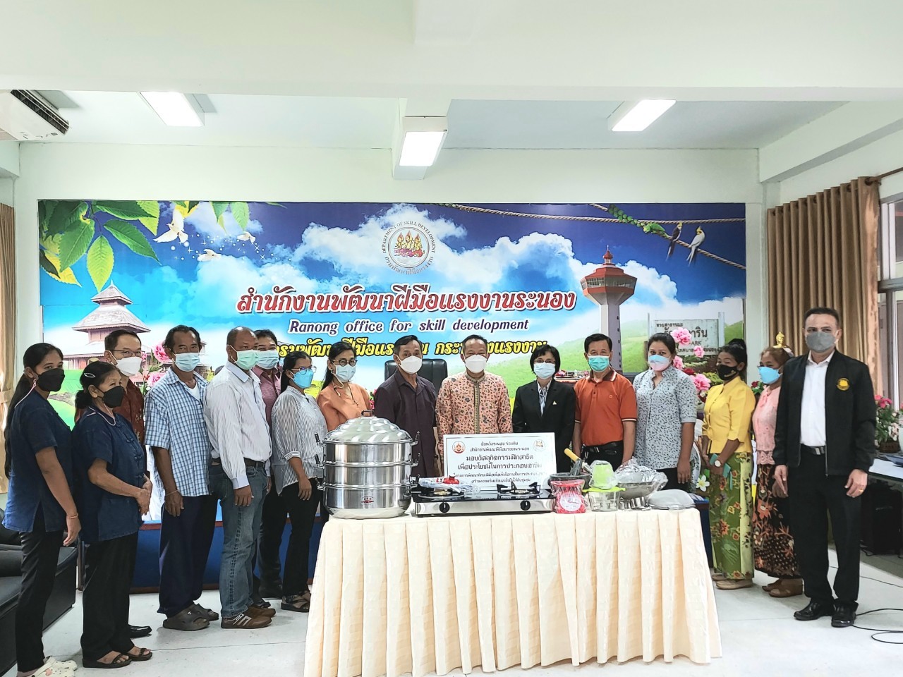 สำนักงานแรงงานจังหวัดระนองร่วมพิธีมอบอุปกรณ์เครื่องใช้ในโครงการพัฒนาทักษะฝีมือในการประกอบอาชีพสร้างความเข้มแข็งและยั่งยืน