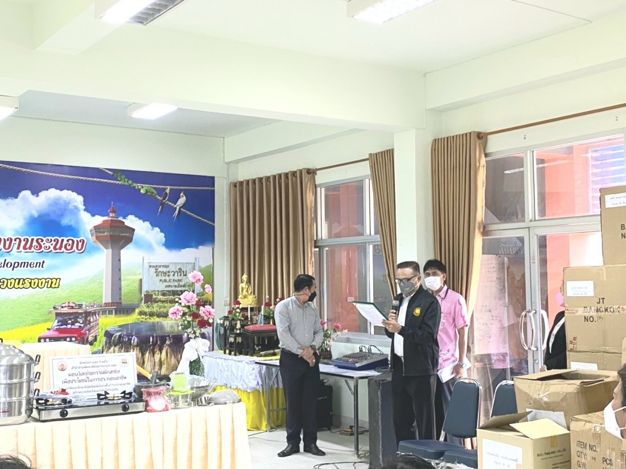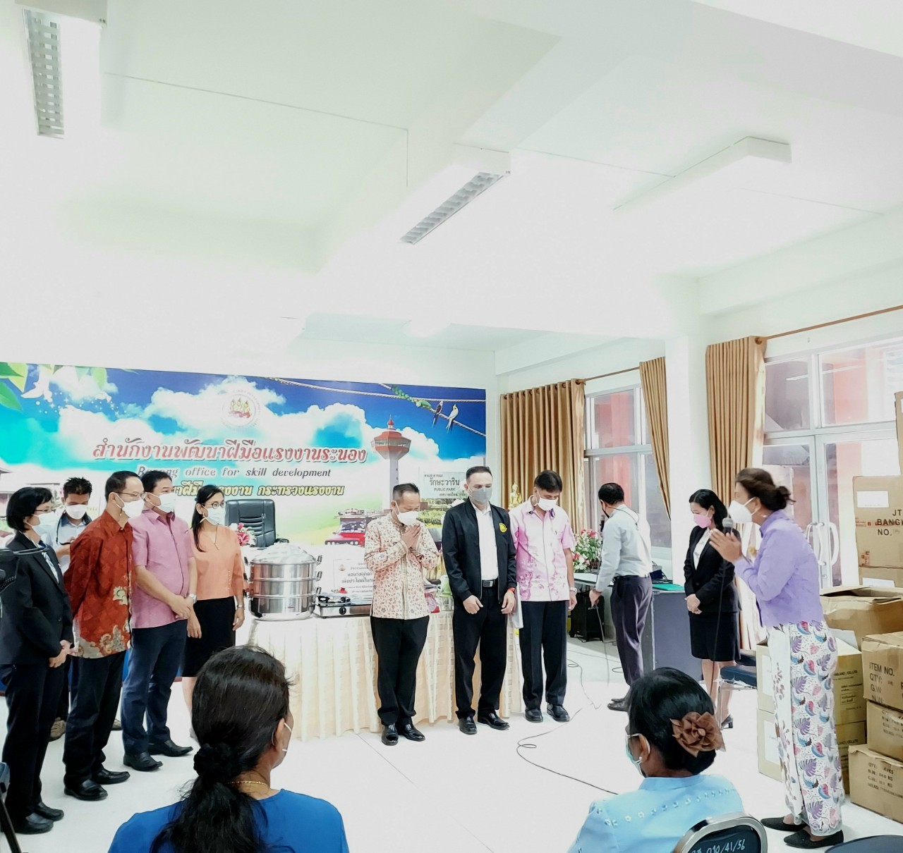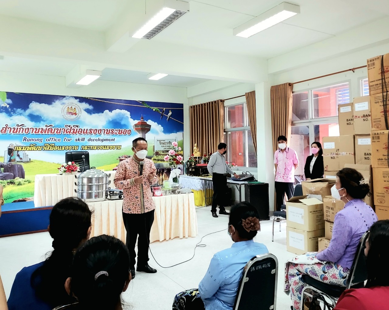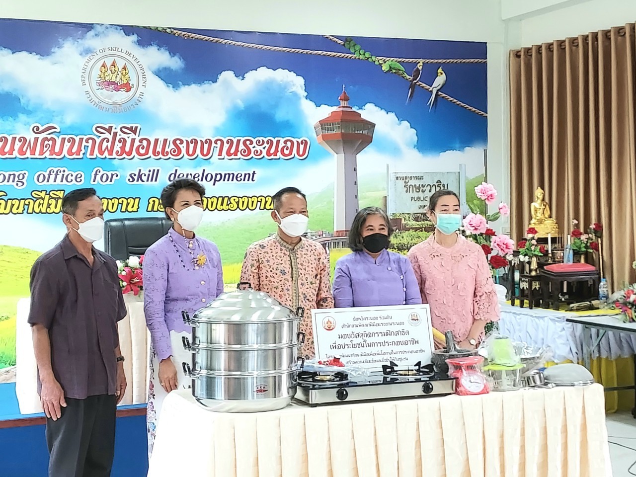 สำนักงานแรงงานจังหวัดระนองร่วมพิธีมอบอุปกรณ์เครื่องใช้ในโครงการพัฒนาทักษะฝีมือในการประกอบอาชีพสร้างความเข้มแข็งและยั่งยืน