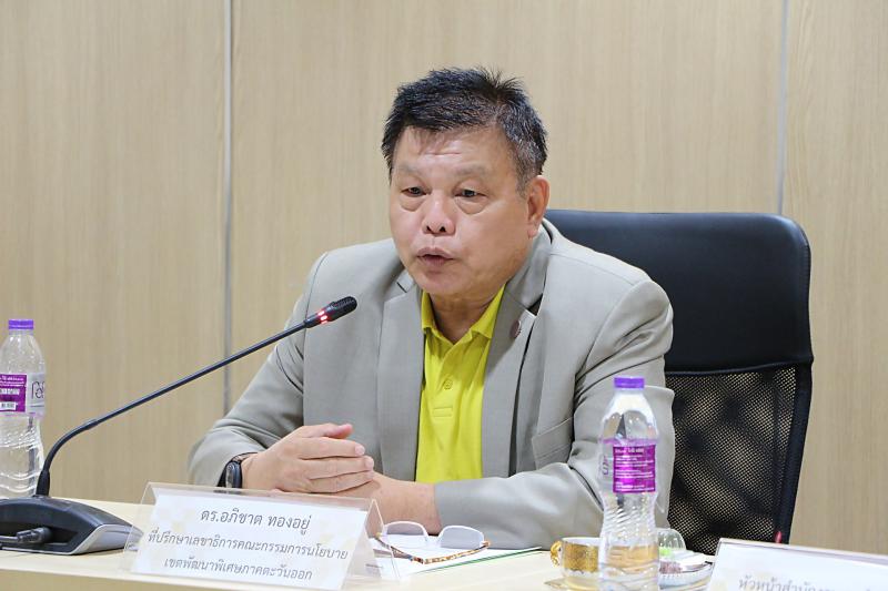 เมื่อวันจันทร์ที่ 18 พฤศจิกายน 2562 เวลา 13.30 น. นางสาวกรจิรัฏฐ์ พงจันทร์ศธร แรงงานจังหวัดระยอง ในฐานะเลขานุการคณะอนุ กก. ด้านการศึกษาและการพัฒนาทรัพยากรมนุษย์ ใน คกก. ขับเคลื่อนเขตพัฒนาพิเศษภาคตะวันออก จังหวัดระยอง จัดประชุมคณะอนุกรรมการฯ ครั้งที่ 1 ปีงบประมาณ พ.ศ. 2563 เพื่อสรุปผลการดำเนินงาน ปัญหาอุปสรรค ในปีงบประมาณ พ.ศ.2562 และแนวทางการขับเคลื่อนเขตพัฒนาพิเศษภาคตะวันออกด้านการศึกษาและพัฒนาทรัพยากรมนุษย์ ปีงบประมาณ พ.ศ.2563 โดยได้เชิญ ดร.อภิชาต ทองอยู่ ที่ปรึกษาเลขาธิการคณะกรรมการนโยบายเขตพัฒนาพิเศษภาคตะวันออก และประธานคณะทำงานประสานงานด้านการพัฒนาบุคลากร ในเขตพัฒนาพิเศษภาคตะวันออก พร้อมผู้แทนจากสำนักงานคณะกรรมการนโยบายเขตพัฒนาพิเศษภาคตะวันออก เข้าร่วมประชุมชี้แจงให้ข้อมูลแนวทางการพัฒนาทรัพยากรมนุษย์แก่คณะอนุกรรมการฯ ณ ห้องประชุมอุตรกิจพิจารณ์ ชั้น 3 (มุขหน้า) ศาลากลางจังหวัดระยอง ทั้งนี้ คณะอนุ กก. ด้านการศึกษาและการพัฒนาทรัพยากรมนุษย์ หน่วยงานภาครัฐ ภาคเอกชน และผู้ทรงคุณวุฒิเข้าประชุมโดยพร้อมเพรียงกัน โดยนายยุทธพล องอาจอิทธิชัย รองผู้ว่าราชการจังหวัดระยอง ได้มอบหมายให้ นายสมเกียรติ พูลสุขเสริม หัวหน้าสำนักงานจังหวัดระยอง เป็นประธานการประชุม