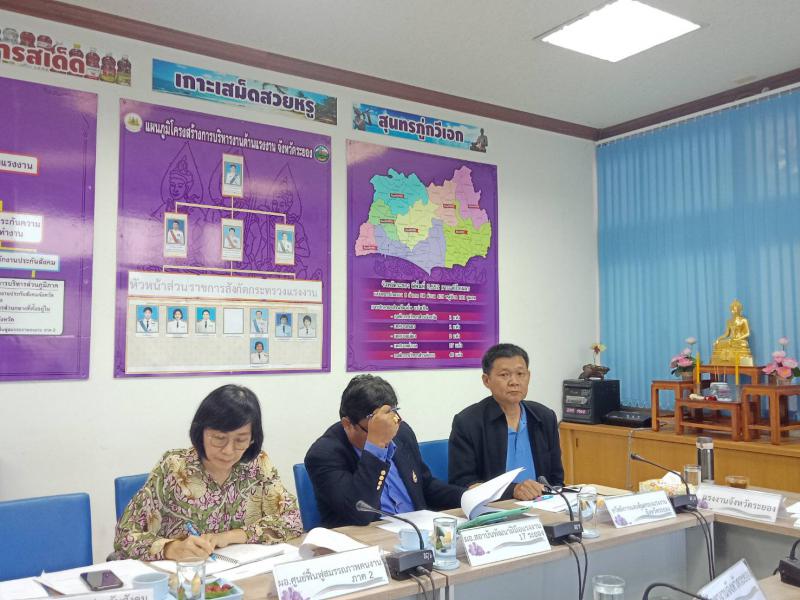 เมื่อวันอังคารที่ 19 พฤศจิกายน 2562 เวลา 09.30 น. นางสาวกรจิรัฏฐ์ พงจันทร์ศธร แรงงานจังหวัดระยอง เป็นประธานการประชุมหัวหน้าส่วนราชการสังกัดกระทรวงแรงงาน และศูนย์ปฏิบัติการป้องกันและการค้ามนุษย์ด้านแรงงาน ครั้งที่ 12/2562 (ครั้งที่ 2 ปีงบประมาณ 2563) โดยมีวาระเพื่อพิจารณาที่สำคัญได้แก่ การบูรณาการตรวจสถานประกอบการร่วมกันระหว่างหน่วยงานในสังกัด การขับเคลื่อนการดำเนินงานตามนโยบายกระทรวงแรงงาน และเขตพัฒนาพิเศษภาคตะวันออกด้านการศึกษาและพัฒนาทรัพยากรมนุษย์ ในปีงบประมาณ 2563 รวมถึงการเตรียมความพร้อมการจัดงานวันสมเด็จพระเจ้าตากสินมหาราชและงานกาชาดจังหวัดระยอง ณ ห้องประชุมสำนักงานแรงงานจังหวัดระยอง โดยมีหัวหน้าส่วนราชการสังกัดกระทรวงแรงงานจังหวัดระยอง เข้าร่วมประชุมโดยพร้อมเพรียงกัน