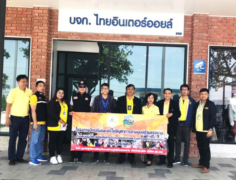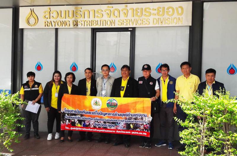 เมื่อวันศุกร์ที่ 12 กรกฎาคม 2562 เวลา 09.00 น. นางสาวกรจิรัฎฐ์ พงจันทร์ศธร แรงงานจังหวัดระยอง มอบหมายให้ นายธนภัทร จิตเที่ยง นักวิชาการแรงงานชำนาญการ พร้อมหน่วยงานสังกัดกระทรวงแรงงานจังหวัดระยอง และ กอ.รมน.จว.รย. ร่วมบูรณาการตรวจสถานประกอบการกลุ่มเสี่ยง ตามแผนปฏิบัติการป้องกันการใช้แรงงานบังคับและการค้ามนุษย์ด้านแรงงาน ปีงบประมาณ 2562 ในพื้นที่ อ.เมืองระยอง และ อ.นิคมพัฒนา โดยตรวจสถานประกอบการ สถานีบริการน้ำมัน และประเภทกิจการอื่นๆ จำนวน 7 แห่ง ลูกจ้าง 250 คน ซึ่งจากการตรวจไม่พบการกระทำที่เข้าข่ายค้ามนุษย์ด้านแรงงานแต่อย่างใด ทั้งนี้ เจ้าหน้าที่ได้เน้นย้ำให้ผู้ประกอบการปฏิบัติตามกฎหมายด้านแรงงานที่เกี่ยวข้องอย่างเคร่งครัดต่อไป