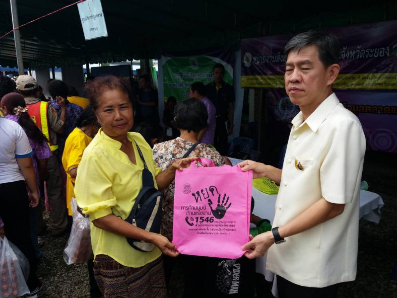 เมื่อวันพุธที่ 18 กันยายน 2562 เวลา 8.30 น. นายสุรศักดิ์ เจริญศิริโชติ ผู้ว่าราชการจังหวัดระยอง เป็นประธานโครงการ “หน่วยบำบัดทุกข์ บำรุงสุข สร้างรอยยิ้ม คืนความสุขให้ประชาชน” (โครงการจังหวัดเคลื่อนที่) ครั้งที่ 12 ประจำปีงบประมาณ 2562 ณ องค์การบริหารส่วนตำบลเขาชะเมา ม.2 ต.ห้วยทับมอญ อ.เขาชะเมา จ.ระยอง โดยได้มอบถุงยังชีพ 100 ชุด มอบแว่นสายตาสำหรับผู้สูงอายุ 480 อัน มอบทุนการศึกษา และมอบรถจักรยานให้แก่นักเรียน จำนวน 10 คัน พร้อมตรวจเยี่ยมหน่วยงานที่เข้าร่วมโครงการ โดย นางสาว กรจิรัฏฐ์ พงจันทร์ศธร แรงงานจังหวัดระยอง มอบหมายให้ นายธนภัทร จิตเที่ยง นักวิชาการแรงงานชำนาญการ เข้าร่วมงาน ทั้งนี้ หัวหน้าส่วนราชการสังกัดกระทรวงแรงงานจังหวัดระยอง ข้าราชการ เจ้าหน้าที่ พร้อมอาสาสมัครแรงงานในพื้นที่ ได้นำภารกิจไปเผยแพร่ประชาสัมพันธ์และให้บริการประชาชน