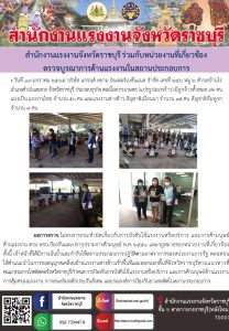 นางลัดดา อุปสินธุ์ แรงงานจังหวัดราชบุรี มอบหมายเจ้าหน้าที่เข้าร่วมตรวจสอบแรงงานต่างด้าวในสถานประกอบการในพื้นที่จังหวัดราชบุรี โดยบูรณาการร่วมกับกองอำนวยการรักษาความมั่นคงภายในจังหวัดราชบุรี สำนักงานจัดหางานจังหวัดราชบุรี สำนักงานตรวจคนเข้าเมืองจังหวัดราชบุรี ตำรวจภูธรจังหวัดราชบุรี ฝ่ายปกครอง (อำเภอเจ้าของพื้นที่) สำนักงานสาธารณสุขอำเภอ ดังนี้ วันที่
