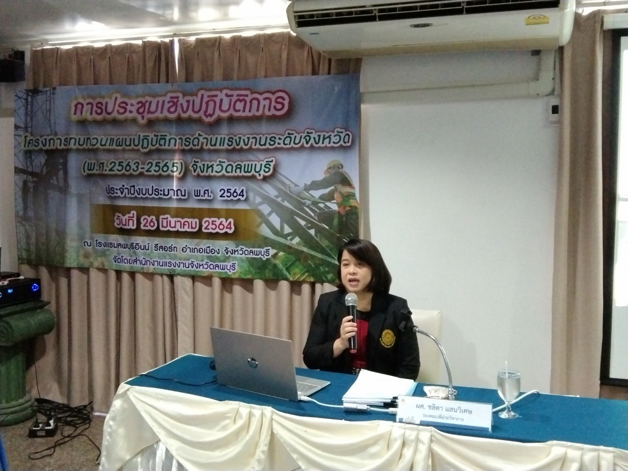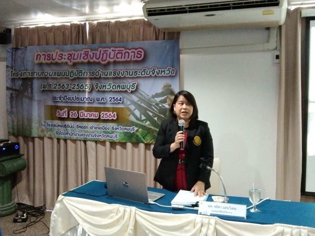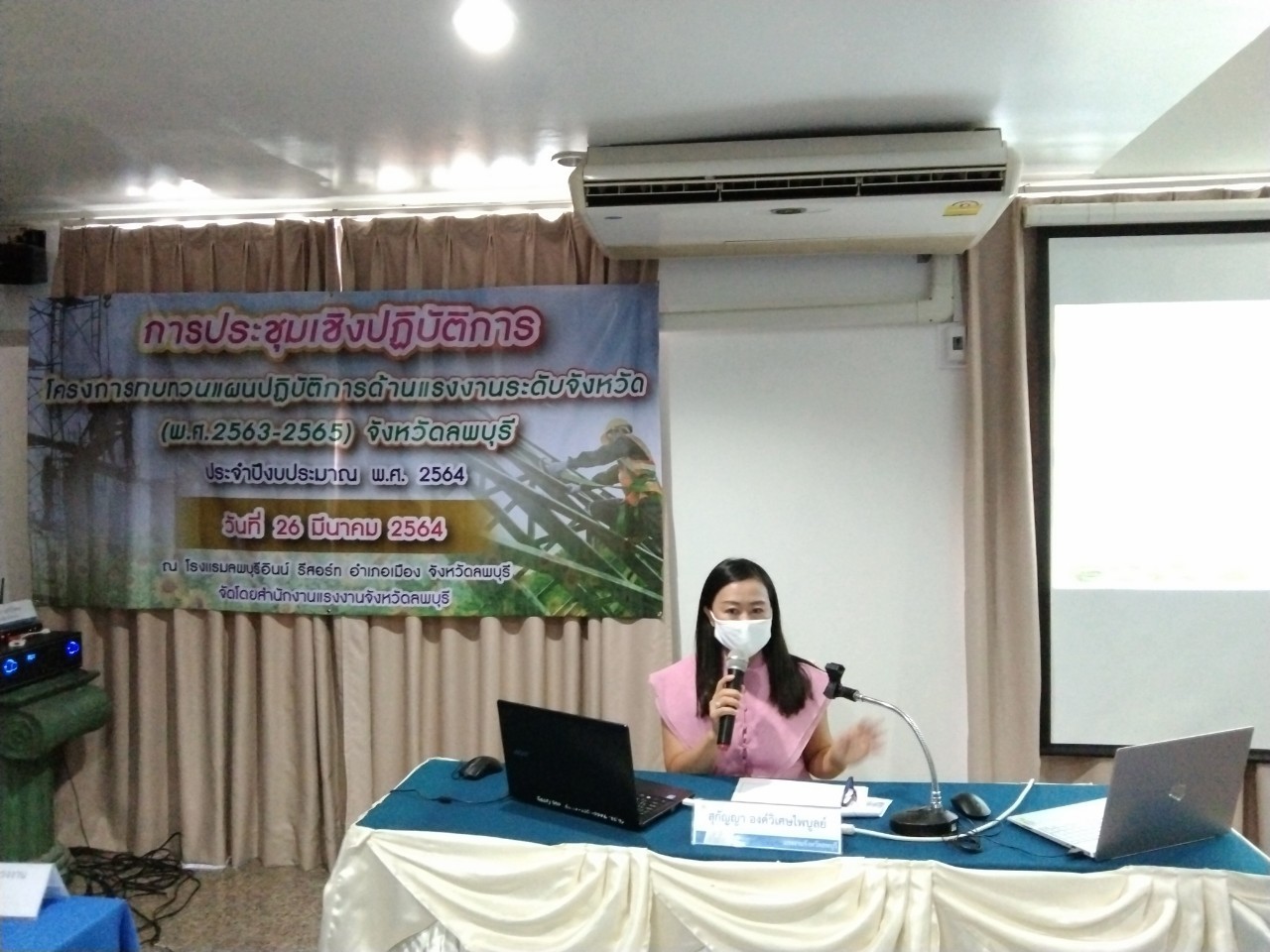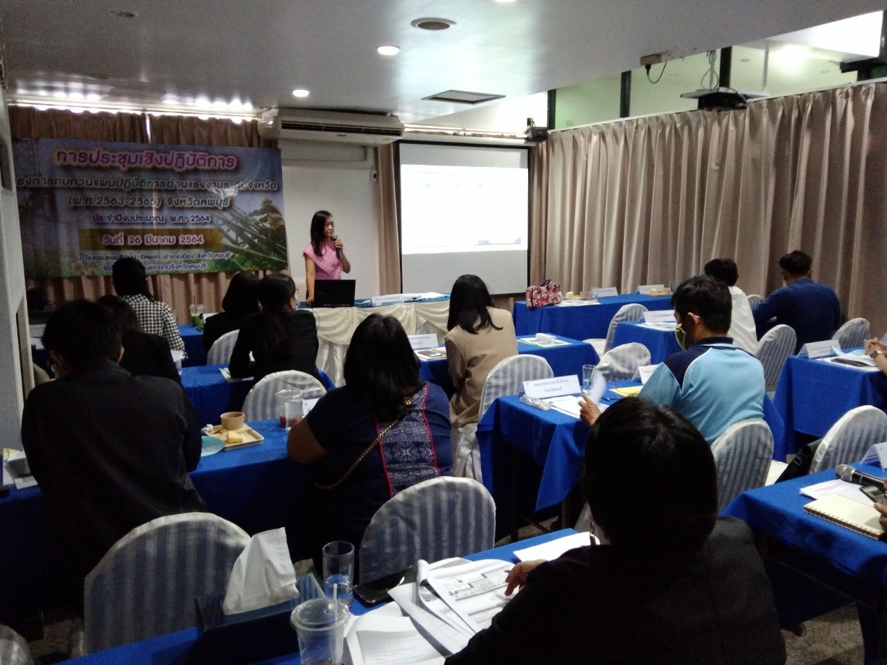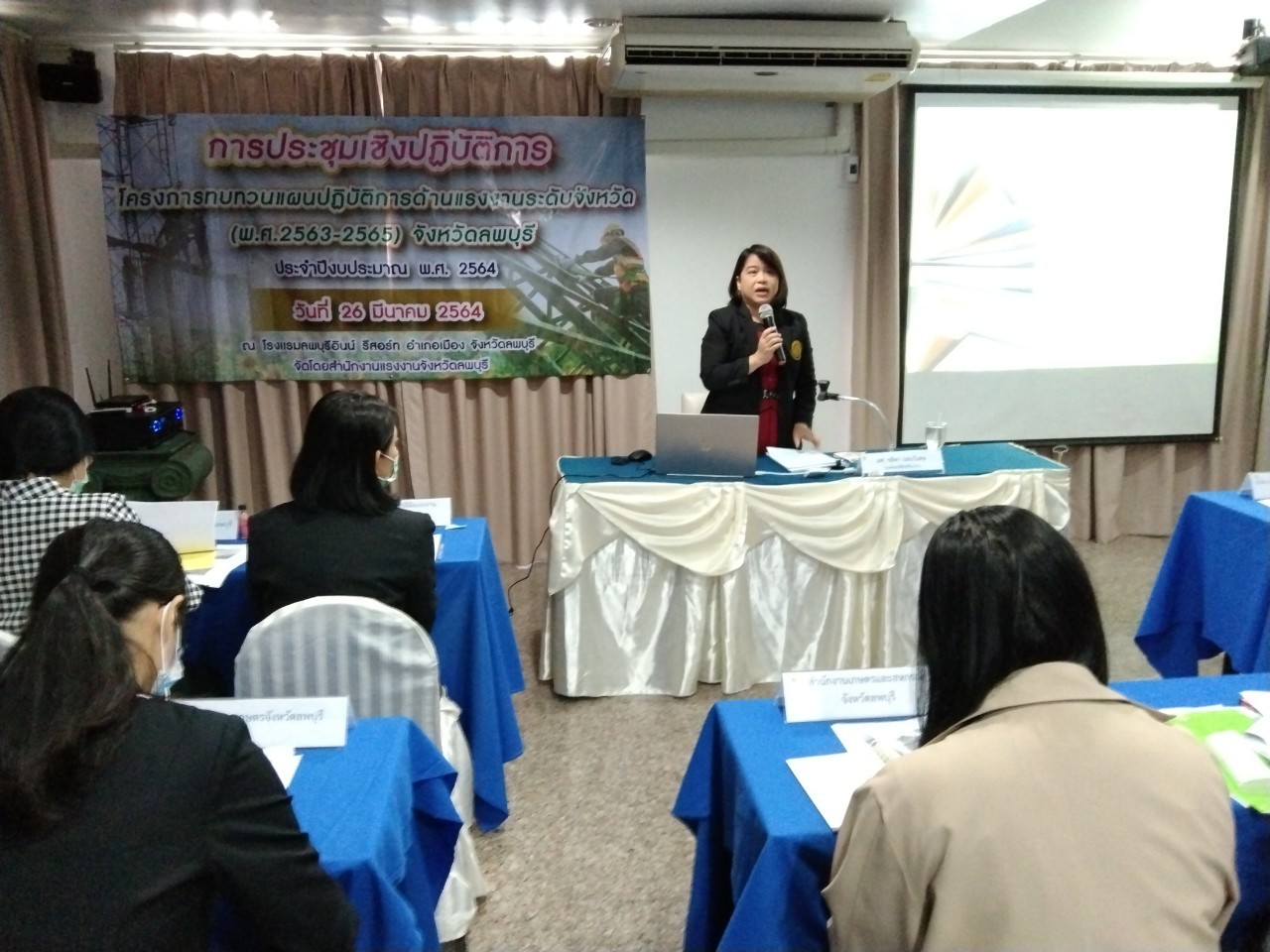 วันศุกร์ที่ 26 มีนาคม 2564 เวลา 09.00 น. นางสาวสุกัญญา องค์วิเศษไพบูลย์ แรงงานจังหวัดลพบุรี เป็นประธานเปิดการประชุมเชิงปฏิบัติการโครงการทบทวนแผนปฏิบัติการด้านแรงงานระดับจังหวัด (พ.ศ.2563-2565) จังหวัดลพบุรี ประจำปีงบประมาณ พ.ศ.2564 โดยมี ผู้ช่วยศาสตราจารย์ ชลิดา แสนวิเศษ รองคณบดีฝ่ายวิชาการ คณะมนุษยศาสตร์และสังคมศาสตร์ มหาวิทยาลัยราชภัฏเทพสตรี เป็นวิทยากร ในการจัดทำแผนดังกล่าว ซึ่งผู้เข้าร่วมประชุมประกอบด้วย คณะทำงานทบทวนแผนยุทธศาสตร์ด้านแรงงานจังหวัดลพบุรี และเจ้าหน้าที่ที่เกี่ยวข้อง ณ โรงแรมลพบุรีอินน์ รีสอร์ท อำเภอเมืองลพบุรี จังหวัดลพบุรี
