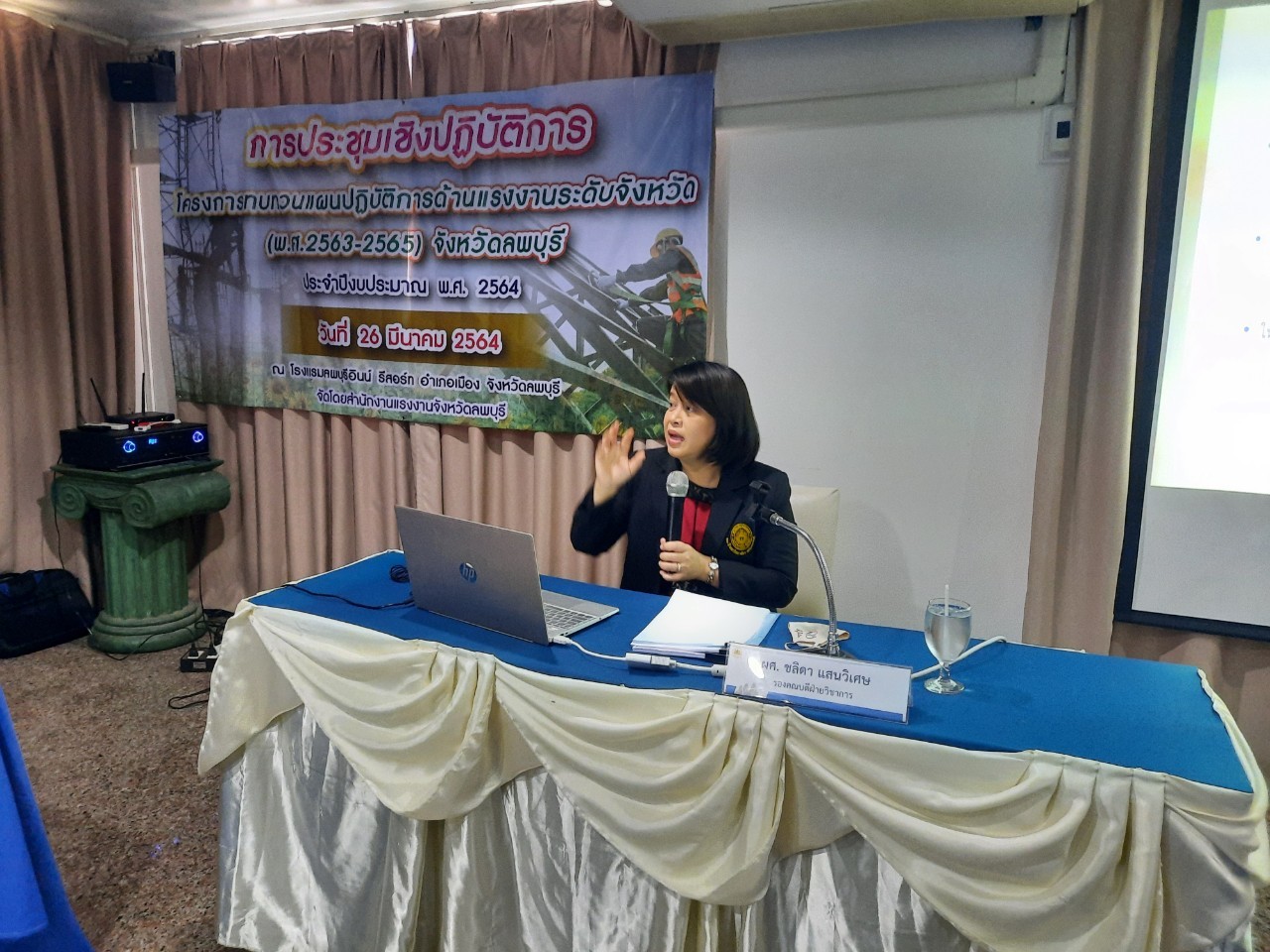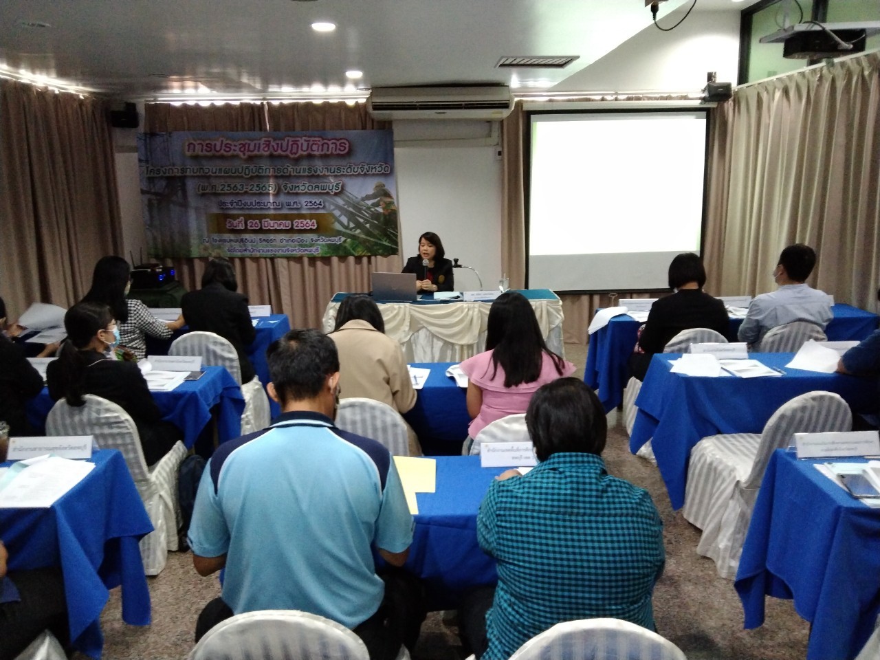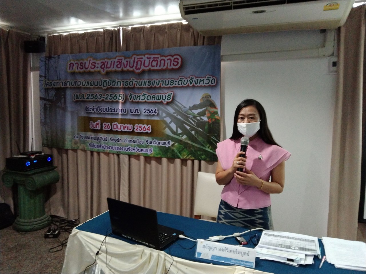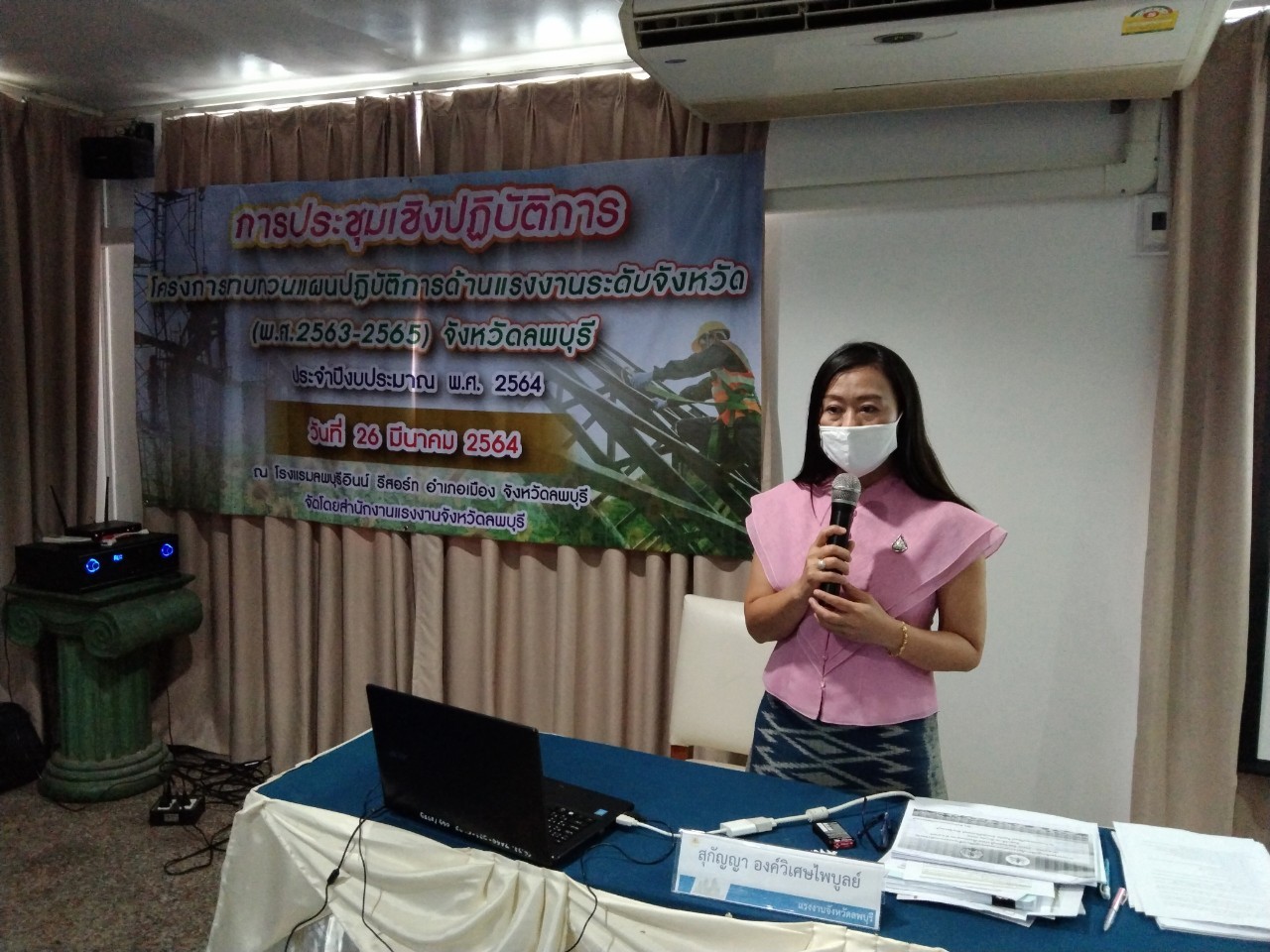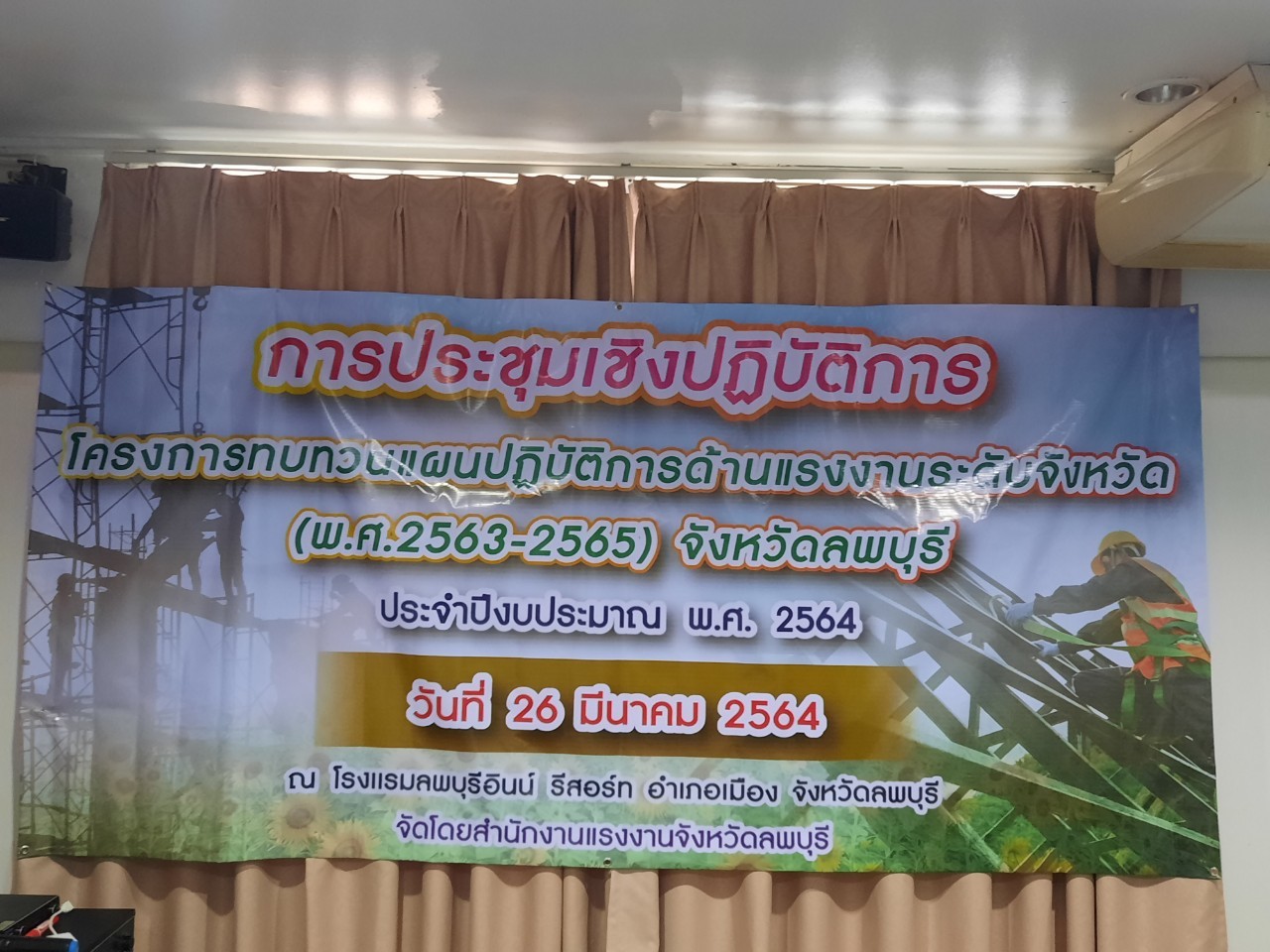 วันศุกร์ที่ 26 มีนาคม 2564 เวลา 09.00 น. นางสาวสุกัญญา องค์วิเศษไพบูลย์ แรงงานจังหวัดลพบุรี เป็นประธานเปิดการประชุมเชิงปฏิบัติการโครงการทบทวนแผนปฏิบัติการด้านแรงงานระดับจังหวัด (พ.ศ.2563-2565) จังหวัดลพบุรี ประจำปีงบประมาณ พ.ศ.2564 โดยมี ผู้ช่วยศาสตราจารย์ ชลิดา แสนวิเศษ รองคณบดีฝ่ายวิชาการ คณะมนุษยศาสตร์และสังคมศาสตร์ มหาวิทยาลัยราชภัฏเทพสตรี เป็นวิทยากร ในการจัดทำแผนดังกล่าว ซึ่งผู้เข้าร่วมประชุมประกอบด้วย คณะทำงานทบทวนแผนยุทธศาสตร์ด้านแรงงานจังหวัดลพบุรี และเจ้าหน้าที่ที่เกี่ยวข้อง ณ โรงแรมลพบุรีอินน์ รีสอร์ท อำเภอเมืองลพบุรี จังหวัดลพบุรี
