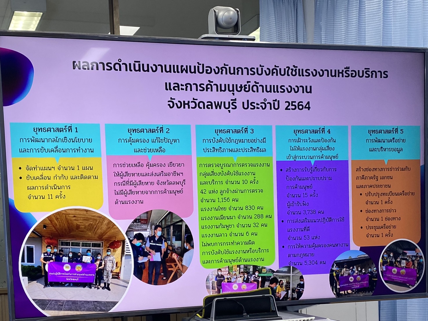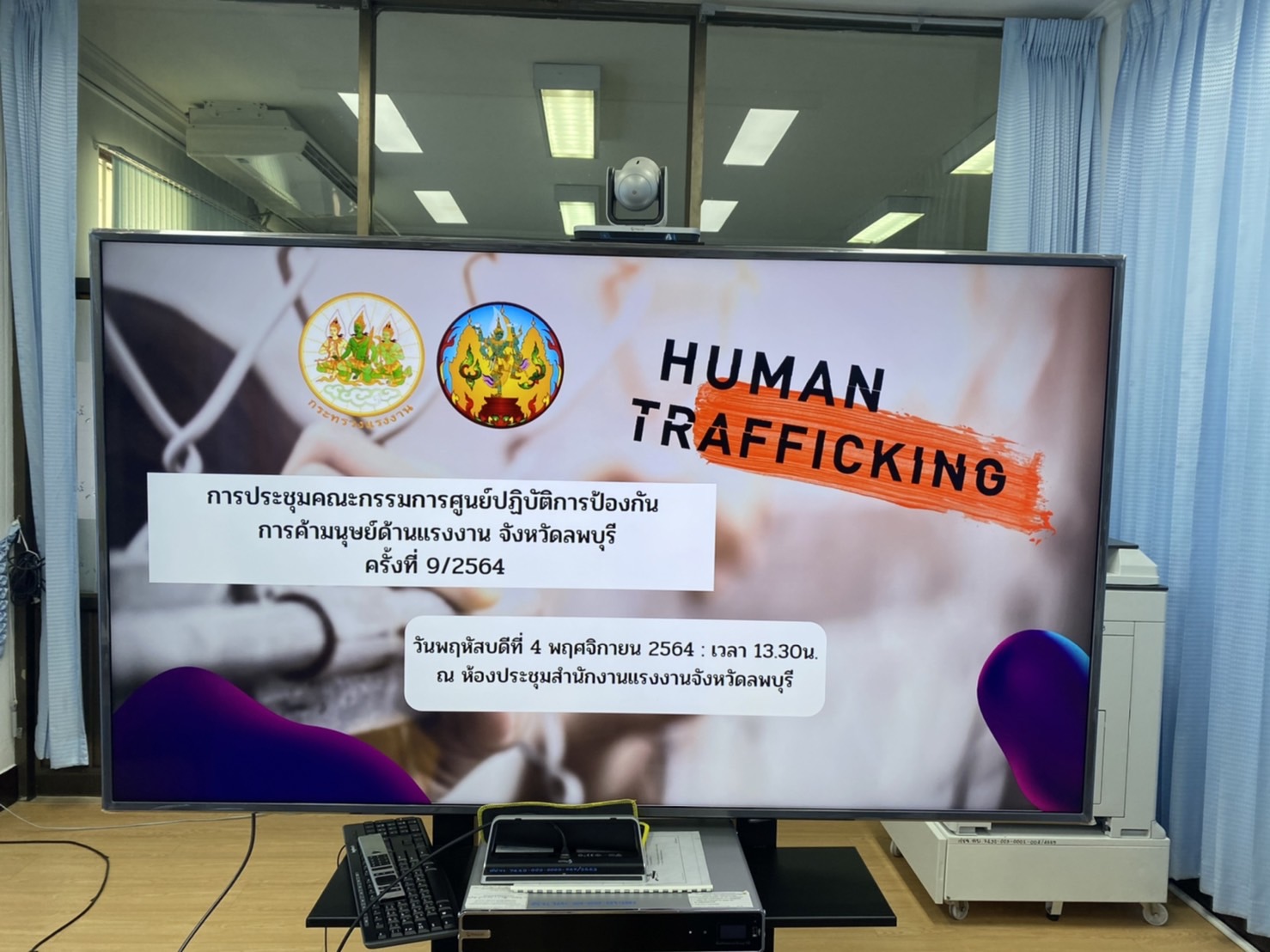วันที่ 4 พฤศจิกายน 2564 เวลา 13.30 น. นางสาวสุกัญญา องค์วิเศษไพบูลย์ แรงงานจังหวัดลพบุรี เป็นประธานการประชุม คณะกรรมการศูนย์ปฏิบัติการป้องกันการค้ามนุษย์ด้านแรงงานจังหวัดลพบุรี ครั้งที่ 9/2564 โดยมี คณะกรรมการศูนย์ปฏิบัติการป้องกันการค้ามนุษย์ด้านแรงงานจังหวัดลพบุรี และเจ้าหน้าที่สำนักงานแรงงานจังหวัดลพบุรี เข้าร่วมประชุมฯ เพื่อพิจารณาการจัดทำแผนปฏิบัติการป้องกันการบังคับใช้แรงงานหรือบริการ และการค้ามนุษย์ด้านแรงงานจังหวัดลพบุรี ประจำปี พ.ศ. 2565 ณ ห้องประชุมสำนักงานแรงงานจังหวัดลพบุรี ชั้น 1 ศาลากลางจังหวัดลพบุรี