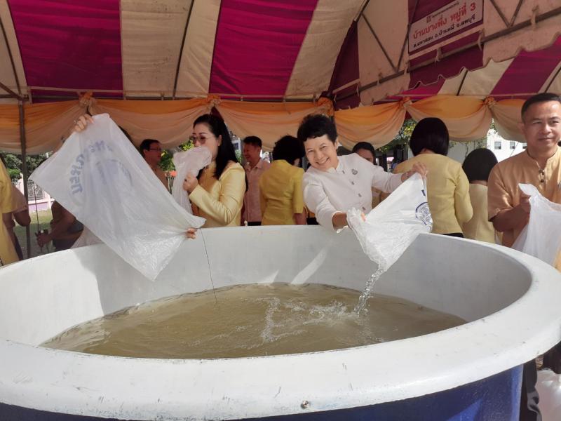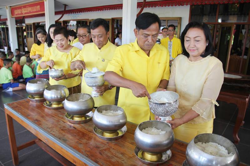 ณ วัดบางผึ้งจังหวัดลพบุรี โดยมี นายสุปกิต โพธิ์ปภาพันธ์ผู้ว่าราชการจังหวัดลพบุรี พร้อมด้วยรองผู้ว่าราชการจังหวัดลพบุรี หัวหน้าส่วนราชการ และประชาชนชาวลพบุรี ร่วมกันหิ้วปิ่นโต อาหารคาวหวาน โดยงดการใช้ถุงพลาสติกและกล่องโฟม เพื่อเป็นการรักษาสิ่งแวดล้อมวายแด่พระภิกษุสงฆ์