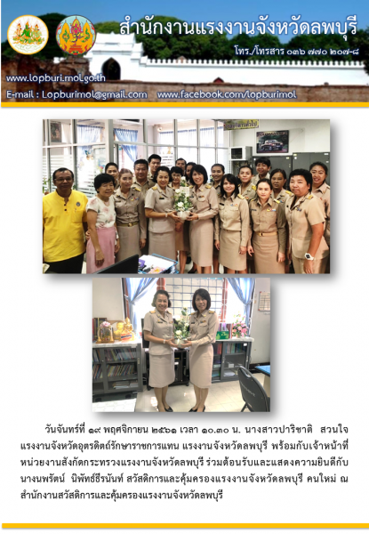 สำนักงานแรงงานจังหวัดลพบุรี ร่วมต้อนรับและแสดงความยินดีกับสวัสดิการและคุ้มครองแรงงานจังหวัดลพบุรีคนใหม่