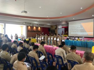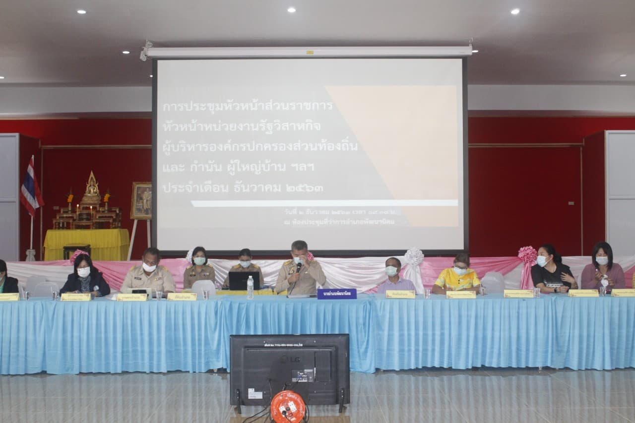 วันพุธที่ 2 ธันวาคม 2563 เวลา 09.00 น. ว่าที่ร้อยตรีทรงพล แป้นแก้ว นายอำเภอพัฒนานิคม เป็นประธานการประชุมกำนัน ผู้ใหญ่บ้าน องค์กรปกครองส่วนท้องถิ่น และผู้นำชุมชน ประจำเดือนธันวาคม 2563 เพื่อประชาสัมพันธ์ สร้างการรับรู้ภารกิจด้านแรงงาน รณรงค์การป้องกันและแก้ไขปัญหายาเสพติด และประชาสัมพันธ์การบูรณาการการตรวจสอบนายจ้าง/สถานประกอบการที่จ้างแรงงานต่างด้าวสัญชาติเมียนมา เพื่อให้ปฏิบัติให้ถูกต้องตามกฎหมาย และเป็นการป้องกันการแพร่ระบาดของโรคติดเชื้อไวรัสโคโรนา 2019 (โควิด-19) มีผู้เข้าประชุมรวม 300 คน ในโอกาสนี้ นางสาวสุกัญญา องค์วิเศษไพบูลย์ แรงงานจังหวัดลพบุรี มอบหมายให้ นายศักดา จันดี นักวิชาการแรงงานชำนาญการ เข้าร่วมประชุมดังกล่าว
