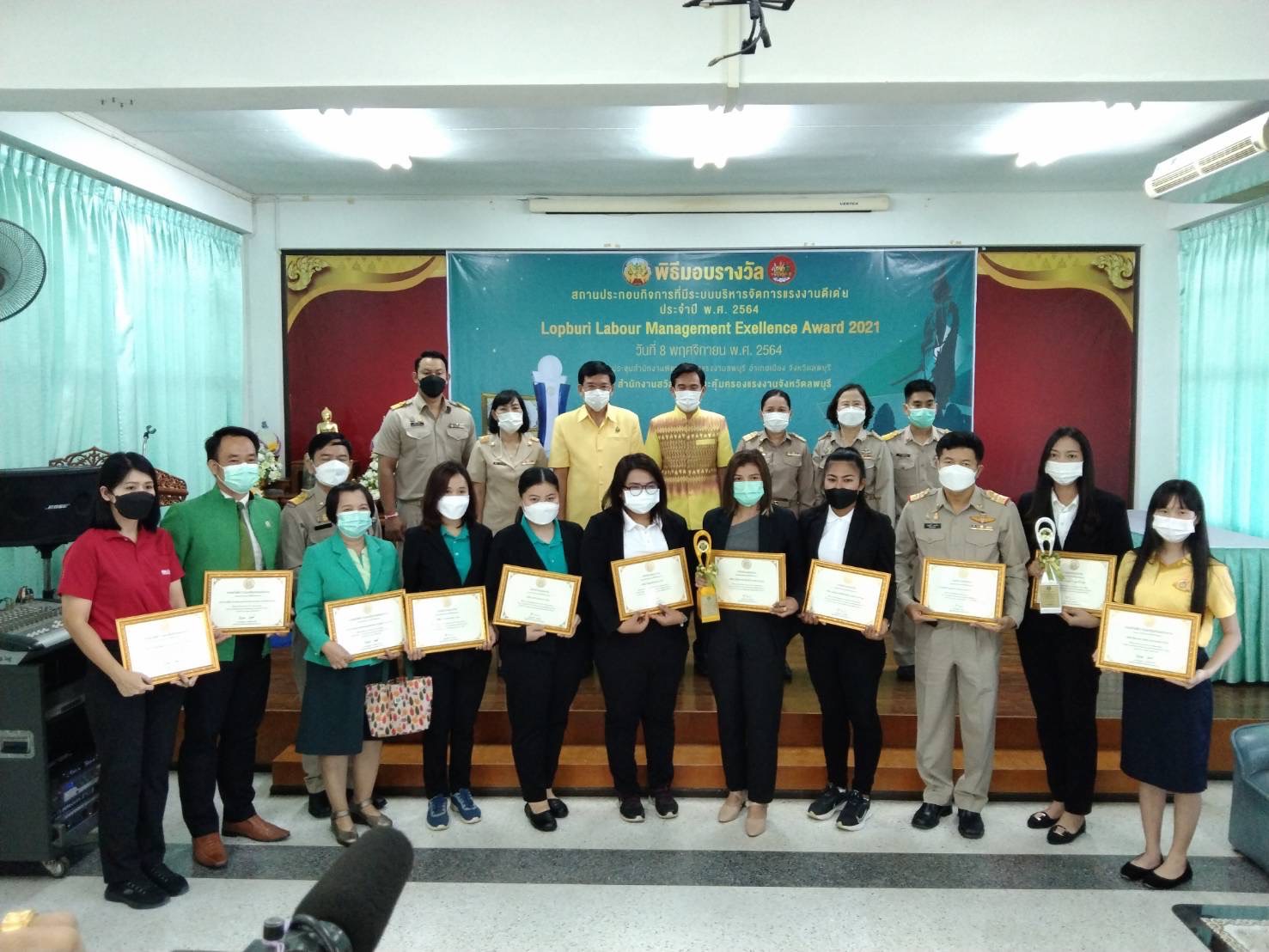 วันที่ 8 พฤศจิกายน 2564 เวลา 09.30 น. นางสาวสุกัญญา องค์วิเศษไพบูลย์ แรงงานจังหวัดลพบุรี มอบหมายให้ นายเชน รัตนเสถียร นักวิชาการแรงงานชำนาญการ พร้อมด้วยหัวหน้าส่วนราชการในสังกัดกระทรวงแรงงานจังหวัดลพบุรี ร่วมพิธีมอบรางวัลสถานประกอบกิจการที่มีระบบบริหารจัดการด้านแรงงานดีเด่น ประจำปี 2564 โดยมี นายนิวัฒน์ รุ่งสาคร ผู้ว่าราชการจังหวัดลพบุรี เป็นประธานในพิธี ฯ ณ ห้องประชุมสำนักงานพัฒนาฝีมือแรงงานลพบุรี อำเภอเมืองลพบุรี จังหวัดลพบุรี