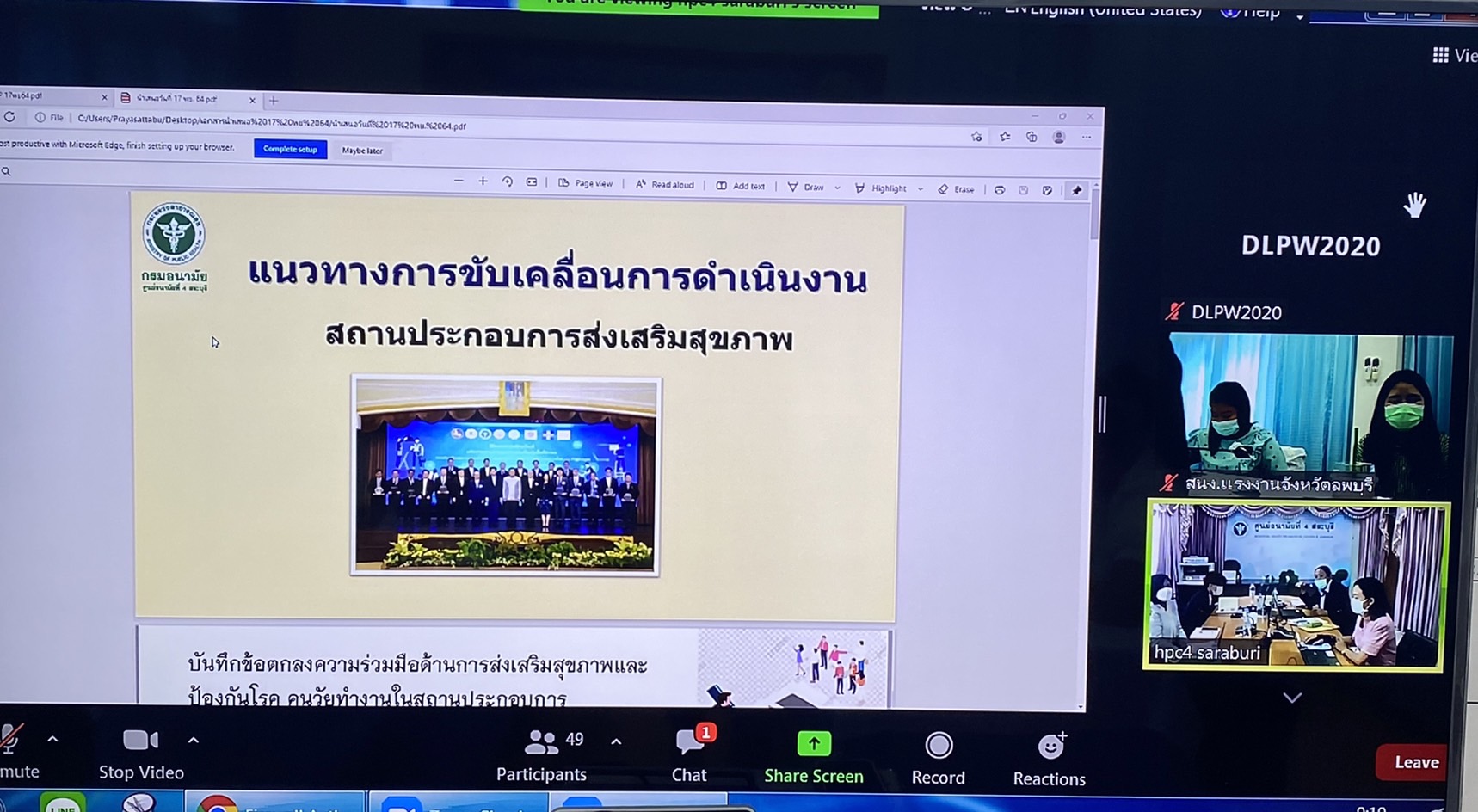 วันที่ 17 พฤศจิกายน 2564 เวลา 08.00 น. นางสาวสุกัญญา องค์วิเศษไพบูลย์ แรงงานจังหวัดลพบุรี มอบหมายให้เจ้าหน้าที่สำนักงานแรงงานจังหวัดลพบุรี เข้าร่วมอบรมพัฒนาศักยภาพคณะทำงานคนวัยทำงานในสถานประกอบการในเขตสุขภาพที่ 4 เพื่อขยายการขับเคลื่อนการดำเนินงาน การพัฒนาระบบเครือข่ายการส่งเสริมสุขภาพ การสร้างกระแสสังคม และสร้างความรอบรู้คนวัยทำงานในสถานประกอบการในเขตสุขภาพที่ 4 โดยมีทันตแพทย์พนิตเทพ ทัพพะรังสี รองผู้อำนวยการศูนย์อนามัยที่ 4 สระบุรีเป็นประธานเปิดการอบรมฯ โดยผ่านโปรแกรม Zoom conference
