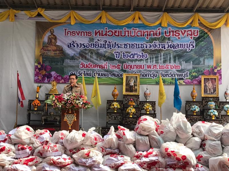วันอังคารที่ 25 พฤษภาคม 2562 : 08.00 น. นางสาวปาริชาติ สวนใจ แรงงานจังหวัดอุตรดิตถ์ รักษาราชการแทน แรงงานจังหวัดลพบุรี พร้อมด้วย หัวหน้าหน่วยงานสังกัดกระทรวงแรงงานจังหวัดลพบุรี ผู้แทน และอาสาสมัครแรงงานอำเภอท่าวุ้ง ร่วมโครงการ “หน่วยบำบัดทุกข์ บำรุงสุข สร้างรอยยิ้มให้ประชาชน จังหวัดลพบุรี ปี 2562” ณ วัดไลย์ ตำบลเขาสมอคอน อำเภอท่าวุ้ง จังหวัดลพบุรี ในการนี้ นายสุปกิต โพธิ์ปภาพันธ์ ผู้ว่าราชการจังหวัดลพบุรี เป็นประธานในงาน เพื่อนำบริการต่างๆ ของหน่วยงานสังกัดกระทรวงแรงงานจังหวัดลพบุรี บริการประชาชนในพื้นที่