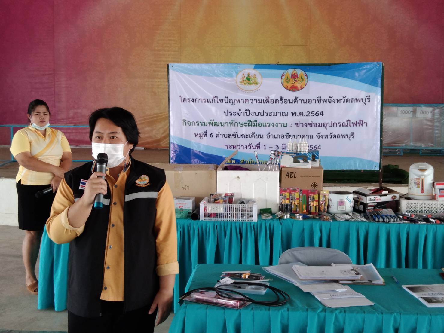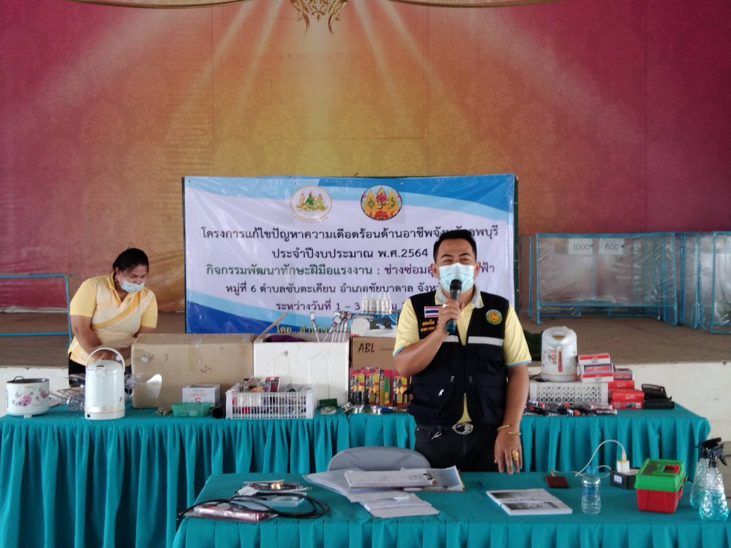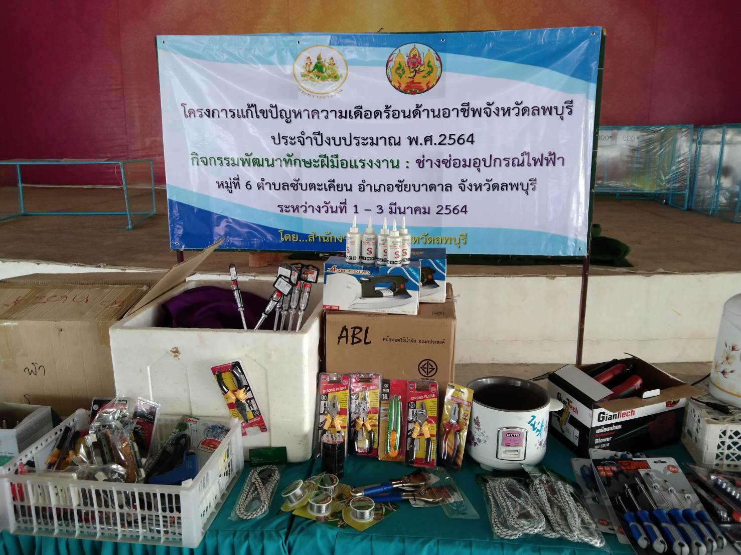 วันที่ 1 มีนาคม 2564 นางสาวสุกัญญา องค์วิเศษไพบูลย์ แรงงานจังหวัดลพบุรี มอบหมายให้ นางสาวจิราภรณ์ อุปละ นักวิชาการแรงงานชำนาญการ เปิดโครงการแก้ไขปัญหาความเดือดร้อนด้านอาชีพ ประจำปีงบประมาณ พ.ศ.2564 กิจกรรมพัฒนาทักษะฝีมือแรงงาน : ช่างซ่อมอุปกรณ์ไฟฟ้า โดยมีวัตถุประสงค์เพื่อช่วยเหลือประชาชนวัยแรงงานในพื้นที่ที่ได้รับความเดือดร้อนด้านอาชีพ ถูกเลิกจ้าง/ว่างงาน ขาดรายได้ หรือประชาชนที่ได้รับผลกระทบจากการแพร่ระบาดของโรคติดเชื้อไวรัสโคโรนา 2019 ให้มีความรู้และพัฒนาทักษะเพื่อใช้ในการประกอบอาชีพ ผู้เข้ารับการอบรม จำนวน 20 คน ระหว่างวันที่ 1 – 3 มีนาคม 2564 ณ อาคารอเนกประสงค์ หมู่ที่ 6 ตำบลซับตะเคียน อำเภอชัยบาดาล จังหวัดลพบุรี