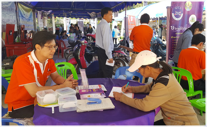 “เดินหน้าลำปาง สร้างสรรค์ ปันสุข” วันนี้ ๗ ก.พ.๖๒ นางจารุณี เขมะรังษี แรงงานจังหวัดลำปาง มอบหมาย นายเผด็จ ชมภูศรี นักวิชาการแรงงาน ศูนย์บริการร่วมกระทรวงแรงงาน ร่วมกับหน่วยงานสังกัดกระทรวงแรงงาน ออกให้บริการด้านแรงงานแก่ประชาชนในพื้นที่จังหวัดลำปางในโครงการ “จังหวัดลำปางเคลื่อนที่ ประจำปีงบประมาณ ๒๕๖๒” ณ วัดบ้านโป้งรัอน ม.๑ ต.ใหม่พัฒนา อ.เกาะคา จ.ลำปาง โดยมี นายทรงพล สวาสดิ์ธรรม ผู้ว่าราชการจังหวัดลำปาง เดินทางมาเป็นประธานในงาน มีผู้เข้ารับบริการรับคำปรึกษาด้านแรงงาน และประชาสัมพันธ์ภารกิจหน่วยงานในสังกัดกระทรวงแรงงานอย่างต่อเนื่อง