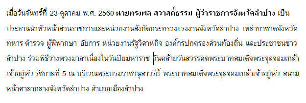 สำนักงานแรงงานจังหวัดลำปางและหน่วยงานสังกัดกระทรวงแรงงาน ร่วมพิธีวางพวงมาลาเนื่องในวันคล้ายวันสวรรคตพระบาทสมเด็จพระจุลจอมเกล้าเจ้าอยู่หัว รัชกาลที่ 5