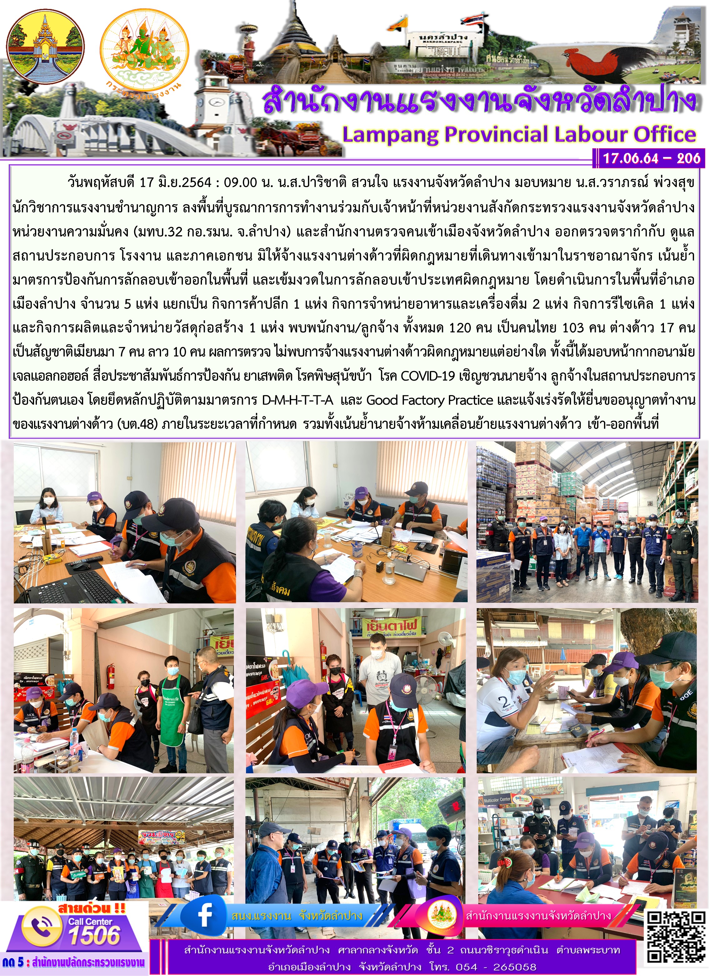 สำนักงานแรงงานจังหวัดลำปาง ลงพื้นที่บูรณาการออกตรวจแรงงานต่างด้าวฯ