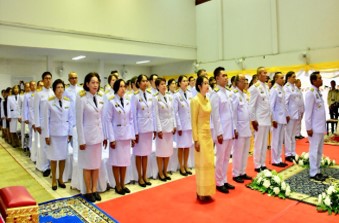 วันที่ 28 กรกฎาคม 2562 น.ส.สลาลีย์ ชัยศิริวงษ์ นักวิชาการแรงงานชำนาญการ รักษาราชการแทนแรงงานจังหวัดลำพูน พร้อมข้าราชการและเจ้าหน้าที่สำนักงานแรงงานจังหวัดลำพูน ร่วมกิจกรรมเนื่องในวันเฉลิมพระชนมพรรษาพระบาทสมเด็จพระเจ้าอยู่หัว ได้แก่ พิธีทำบุญตักบาตรถวายเป็นพระราชกุศล พิธีถวายสัตย์ปฏิญาณเพื่อเป็นข้าราชการที่ดีและพลังของแผ่นดิน พิธีลงนามถวายพระพรชัยมงคล และร่วมกิจกรรมโครงการน้ำพระทัยพระราชทานส่วนภูมิภาคสภาสังคมสงเคราะห์ 76 จังหวัด ประจำปี 2562 เพื่อเฉลิมพระเกียรติพระบาทสมเด็จพระเจ้าอยู่หัว เนื่องในโอกาสเฉลิมพระชนมพรรษา 28 กรกฎาคม 2562