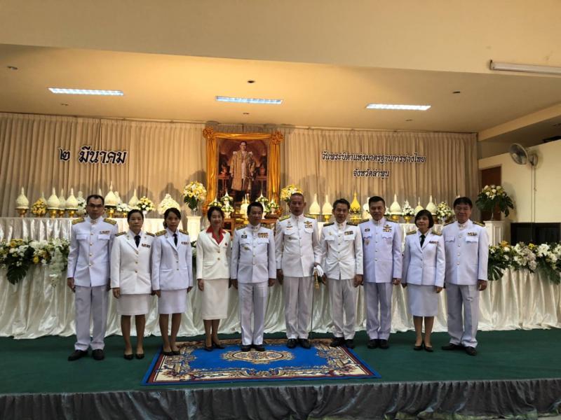 วันที่ 2 มีนาคม 2562 (เวลา 08.00 น.) นางสาวสลาลีย์ ชัยศิริวงษ์ นักวิชาการแรงงานชำนาญการ รักษาราชการแทนแรงงานจังหวัดลำพูน พร้อมข้าราชการและเจ้าหน้าที่สำนักงานแรงงานจังหวัดลำพูน ร่วมพิธีถวายราชสักการะพระบาทสมเด็จพระปรมินทรมหาภูมิพลอดุลยเดช บรมนาถบพิตร “พระบิดาแห่งมาตรฐานการช่างไทย” เนื่องในวันมาตรฐานฝีมือแรงงานแห่งชาติ ประจำปี 2562 ซึ่งสำนักงานพัฒนาฝีมือแรงงานจังหวัดลำพูน ได้จัดขึ้นเพื่อเทิดพระเกียรติน้อมรำลึกในพระมหากรุณาธิคุณ และเพื่อแสดงให้เห็นถึงพระปรีชาสามารถของพระองค์ทางด้านการช่าง ณ หอประชุม ที่ว่าการอำเภอเมือง จังหวัดลำพูน โดยมีผู้ว่าราชการจังหวัดลำพูน (นายอรรษิษฐ์ สัมพันธรัตน์) เป็นประธาน