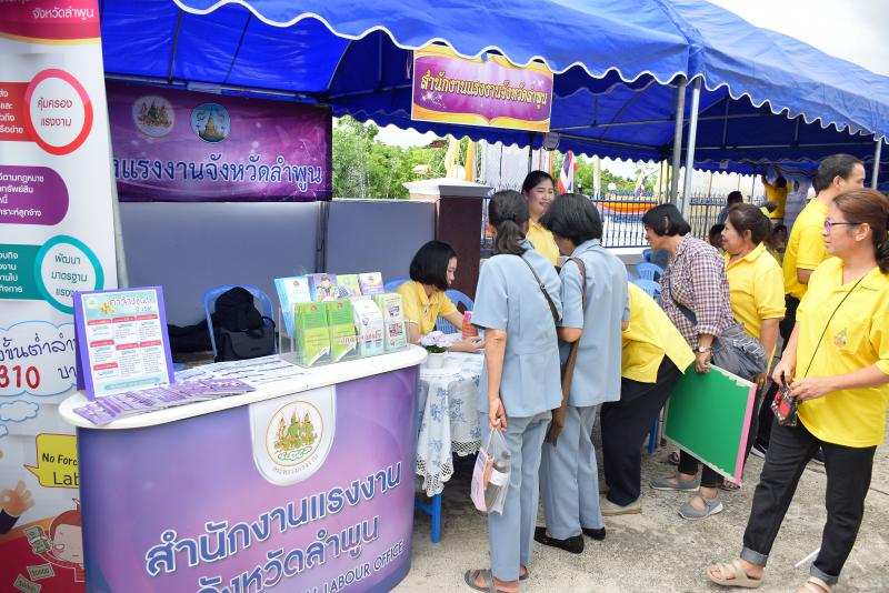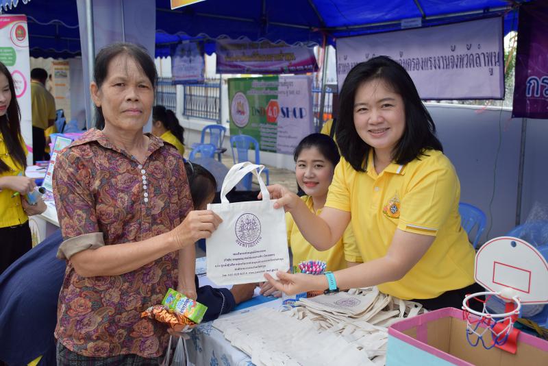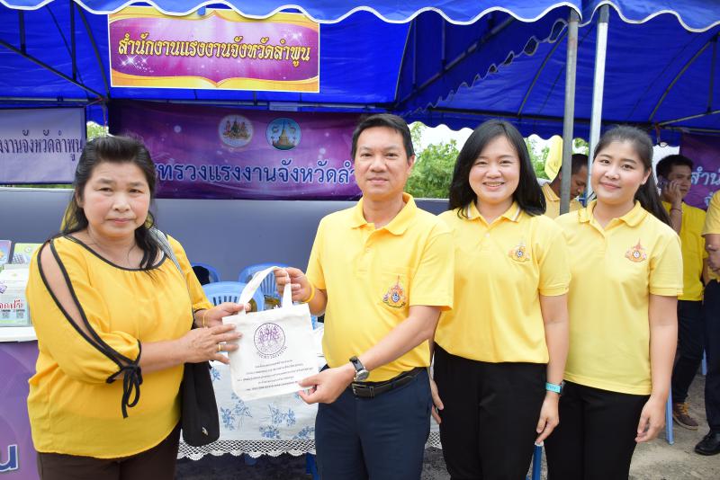 วันที่ 19 มิถุนายน 2562 (นางสาวสลาลีย์ ชัยศิริวงษ์) นักวิชาการแรงงานชำนาญการ รักษาราชการแทนแรงงานจังหวัดลำพูน มอบหมาย นางสาววรัญญา สุทธหลวง นักวิชาการแรงงานชำนาญการ ร่วมออกให้บริการประชาชนตามโครงการ“หน่วยบำบัดทุกข์ บำรุงสุข จังหวัดลำพูนเคลื่อนที่”ครั้งที่ 7/2562 ณ องค์การบริหารส่วนตำบลท่าตุ้ม ตำบลท่าตุ้ม อำเภอป่าซาง จังหวัดลำพูน โดยได้ประชาสัมพันธ์ข้อมูลข่าวสารงานในภารกิจของหน่วยงานในสังกัดกระทรวงแรงงาน และมอบถุงผ้าเพื่อร่วมรณรงค์ลดการใช้ถุงพลาสติกให้กับผู้มารับบริการ โดยมี ผู้ว่าราชการจังหวัดลำพูน (นายอรรษิษฐ์ สัมพันธรัตน์) เป็นประธาน