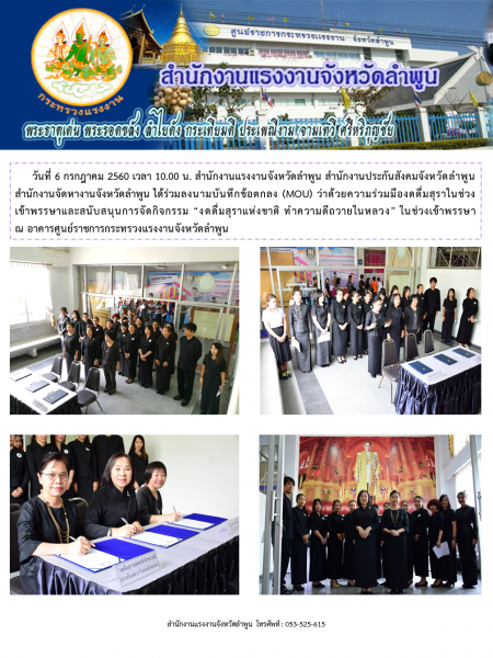 สำนักงานแรงงานจังหวัดลำพูน สำนักงานประกันสังคมจังหวัดลำพูน สำนักงานจัดหางานจังหวัดลำพูน ได้ร่วมลงนามบันทึกข้อตกลง (MOU)