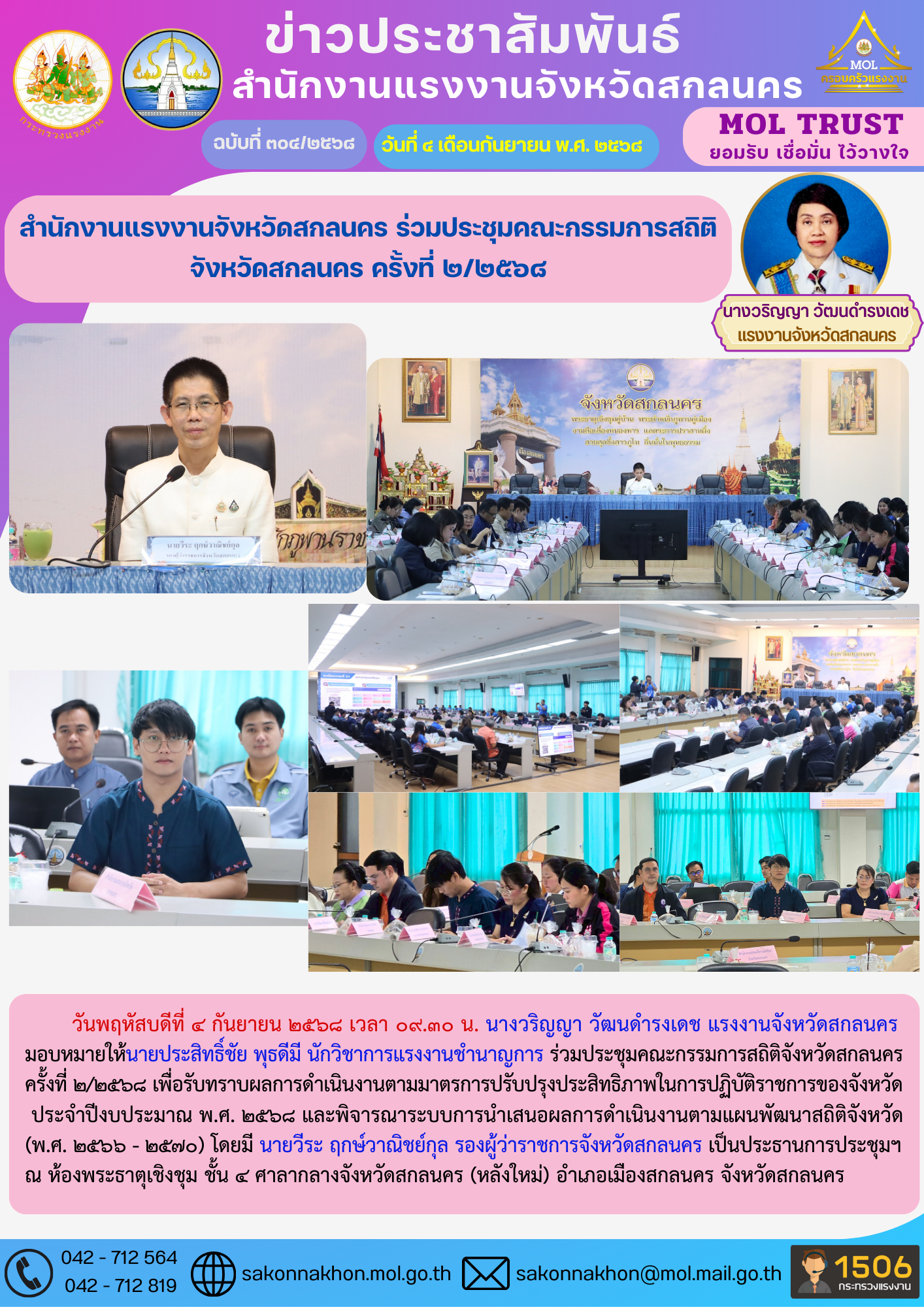 สำนักงานแรงงานจังหวัดสกลนคร ร่วมประชุมคณะกรรมการสถิติ จังหวัดสกลนคร ครั้งที่ 2/2568