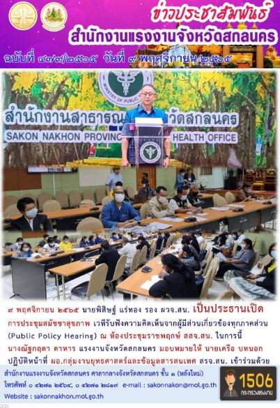 สำนักงานแรงงานจังหวัดสกลนคร ร่วมประชุมสมัชชาสุขภาพ