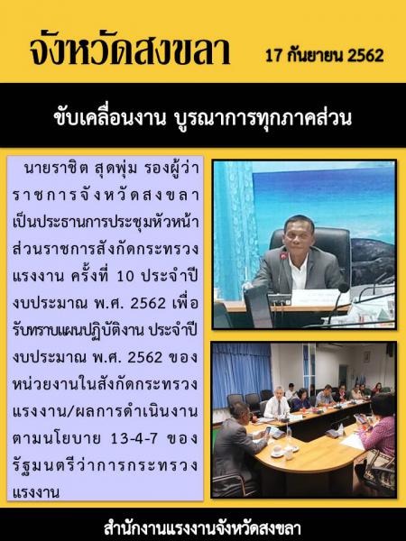 สำนักงานแรงงานจังหวัดสงขลา ร่วมประชุมขับเคลื่อนงาน บูรณาการทุกภาคส่วน ณ ห้องประชุมสำนักงานแรงงานจังหวัดสงขลา