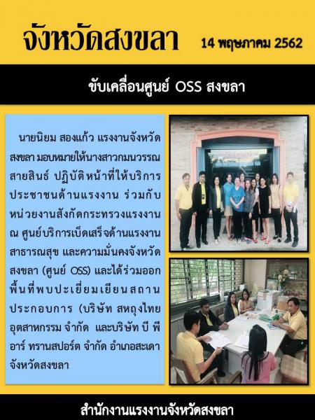 สำนักงานแรงงานจังหวัดสงขลา เข้าร่วมขับเคลื่อนศูนย์ OSS สงขลา เพื่อพบปะเยี่ยมเยียนสถานประกอบการ บริษัท สหถุงไทย อุตสาหกรรม จำกัด และ บริษัท บี พี อาร์ ทรานสปอร์ต จำกัด อ.สะเดา จ.สงขลา
