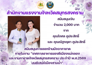 สำนักงานแรงงานจังหวัดสมุทรสงคราม สนับสนุนเงิน จำนวน 2,000 บาท จาก คุณโกศล คูประสิทธิ์ และ คุณณัฐกฤตา คูประสิทธิ์