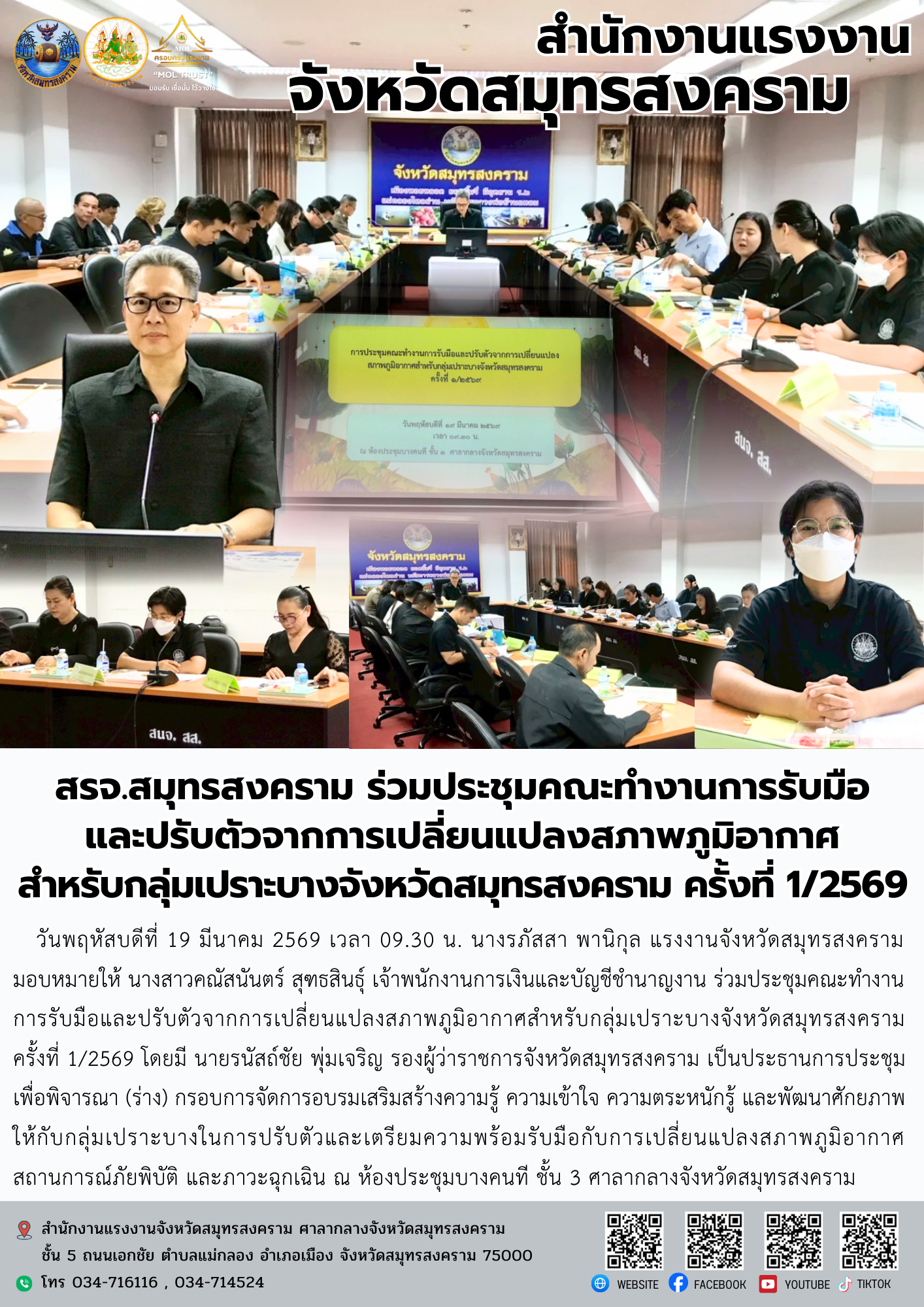 สำนักงานแรงงานจังหวัดสระบุรี ร่วมประชุมคณะกรรมการผลักดันการดำเนินงานตามแผนแม่บทภายใต้ยุทธศาสตร์ชาติประเด็นการต่อต้านการทุจริตและประพฤติมิชอบ จังหวัดสระบุรี ครั้งที่ 1/2569