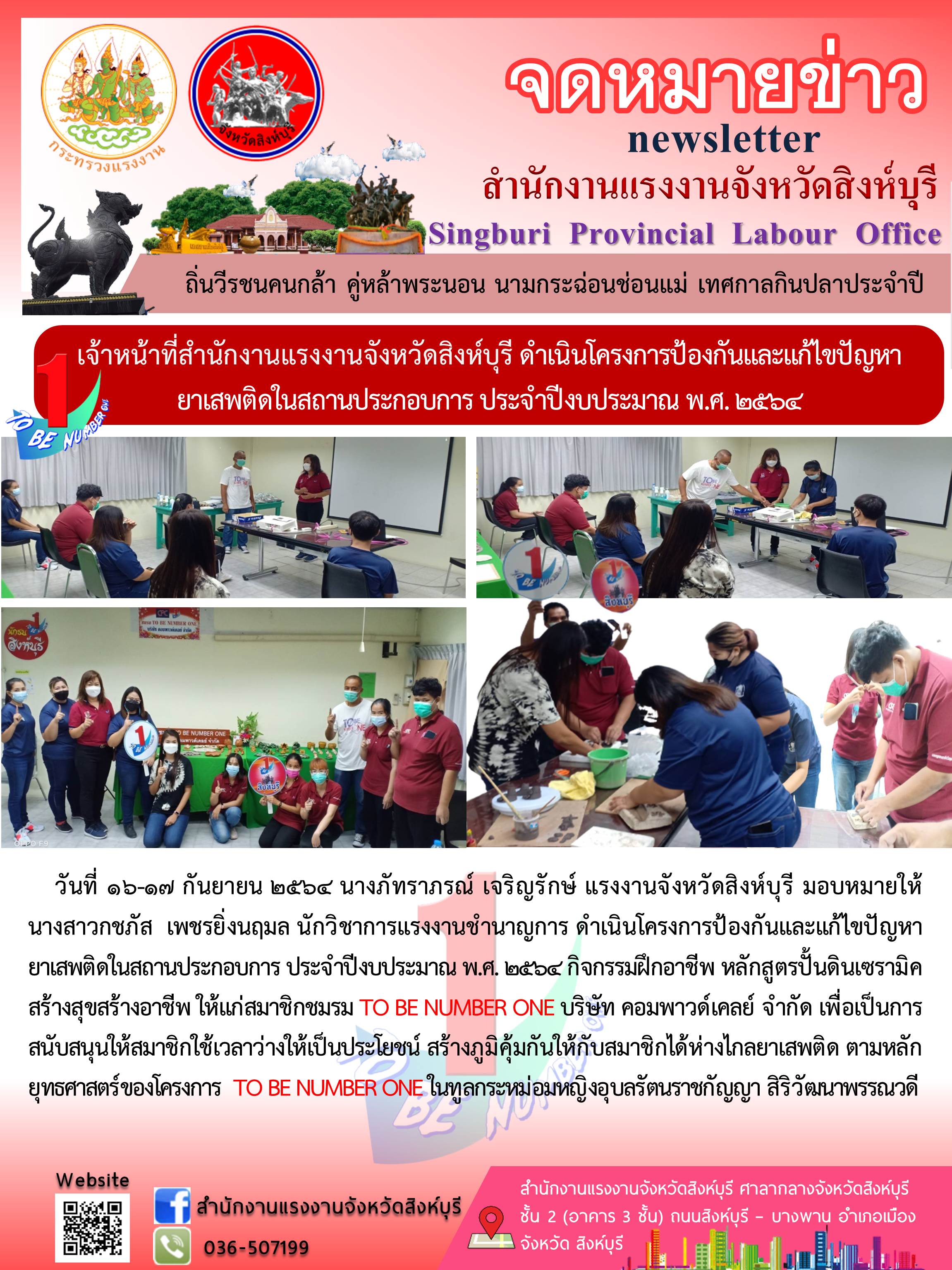 สำนักงานแรงงานจังหวัดสิงห์บุรี ดำเนินโครงการป้องกันและแก้ไขปัญหายาเสพติดในสถานประกอบการ ประจำปีงบประมาณ พ.ศ.2564