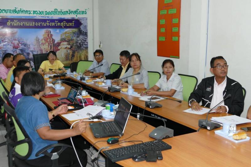 วันที่ ๑๓ พฤศจิกายน ๒๕๖๑ เวลา ๑๓.๓๐ น. สำนักงานแรงงานจังหวัดสุรินทร์ร่วมกับมูลนิธิขวัญชุมชน จัดประชุมโครงการสนับสนุนกลไกพัฒนาคุณภาพชีวิตแรงงานนอกระบบและอาชีวอนามัยกลุ่มอาชีพทอผ้าพื้นที่เขต สปสช. ที่ ๙นครราชสีมา ณ ห้องประชุมสำนักงานแรงงานจังหวัดสุรินทร์