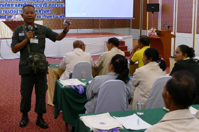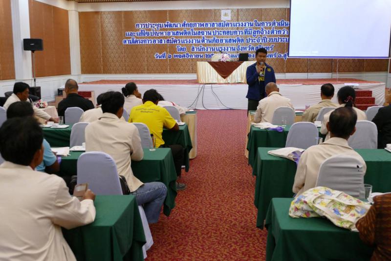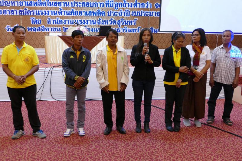 สำนักงานแรงงานจังหวัดสุรินทร์ จัดประชุมพัฒนาศักยภาพอาสาสมัครแรงงานในการดำเนินงานป้องกันและแก้ไขปัญหายาเสพติด ณ ห้องรัตนสุวรรณอมรินทร์ โรงแรมทองธารินทร์ อำเภอเมืองสุรินทร์ จังหวัดสุรินทร์