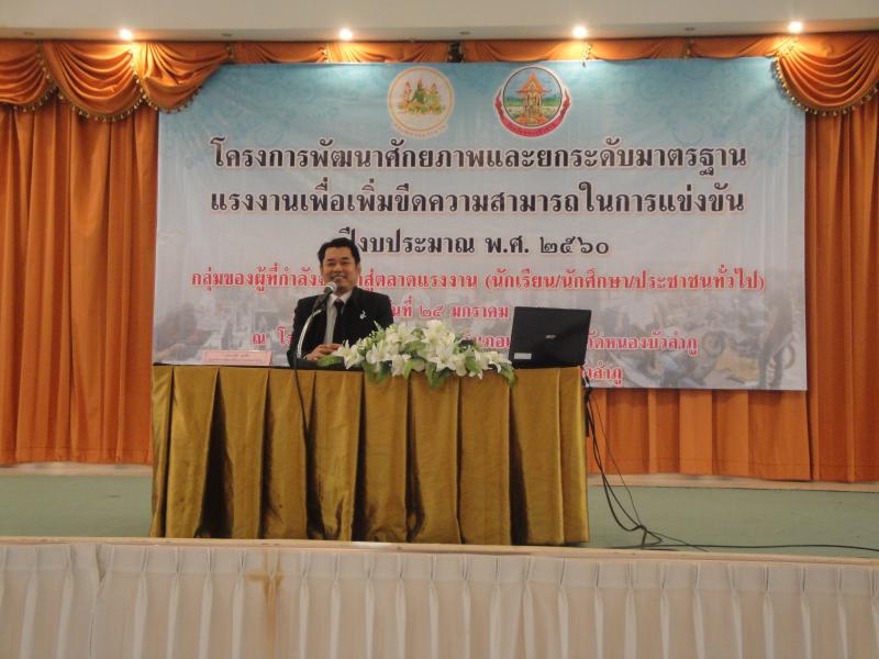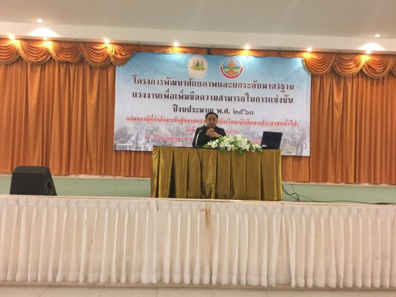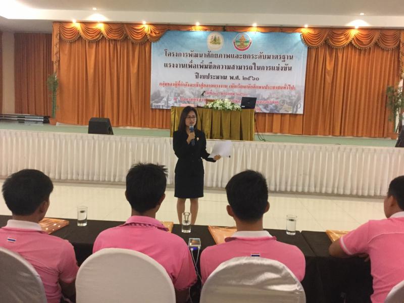 ในวันที่ 25 มกราคม 2560 (เวลา 08.30 – 16.30 น.) สำนักงานแรงงานจังหวัดหนองบัวลำภู โดย นางสาวเมตตา อุดมคำ นักวิชาการแรงงานชำนาญการ รักษาราชการแทนแรงงานจังหวัดหนองบัวลำภู บูรณาการจัดโครงการร่วมกับหน่วยงานในสังกัดกระทรวงแรงงาน จัดอบรมโครงการพัฒนาศักยภาพและยกระดับมาตรฐานแรงงาน เพื่อเพิ่มขีดความสามารถในการแข่งขัน ปีงบประมาณ พ.ศ. 2560 ซึ่งมีกลุ่มเป้าหมายเป็นนักเรียน นักศึกษา ประชาชนทั่วไป มีผู้เข้าร่วมโครงการทั้งสิ้น 181 คน ณ ห้องประชุมณัฐพงษ์ 1 โรงแรมณัฐพงงษ์แกรนด์ อำเภอเมืองหนองบัวลำภู จังหวัดหนองบัวลำภู