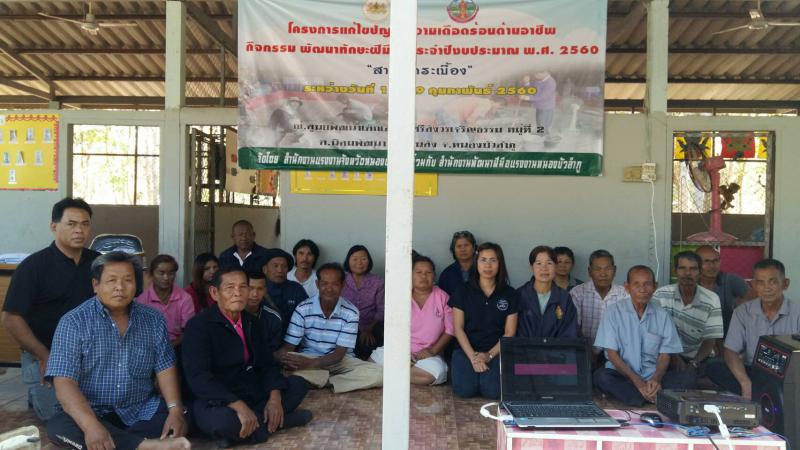 ในวันที่ 19 กุมภาพันธ์ 2560 เวลา 16.00 น. นางสาวเมตตา อุดมคำ นักวิชาการแรงงานชำนาญการ รักษาราชการแทน แรงงานจังหวัดหนองบัวลำภู ปิดฝึกอาชีพ และมอบเงินค่าเบี้ยเลี้ยงแก่ผู้เข้าฝึกอบรม สาขาปูกระเบื้อง ณ หมู่ที่ 2 ตำบลนิคมพัฒนา อำเภอโนน สัง จังหวัดหนองบัวลำภู ภายใต้โครงการแก้ไขปัญหาความเดือดร้อนด้านอาชีพ ประจำปี 2560 ซึ่งสำนักงานแรงงานจังหวัด ร่วมกับ สำนักงานพัฒนาฝีมือแรงงาน โดยมีนายทองสา พรหมหล้า อาสาสมัครแรงงานตำบลนิคมพัฒนา เป็นผู้ประสานงาน ทั้งนี้มีประชาชนกลุ่มเป้าหมายจำนวน 16 คน
