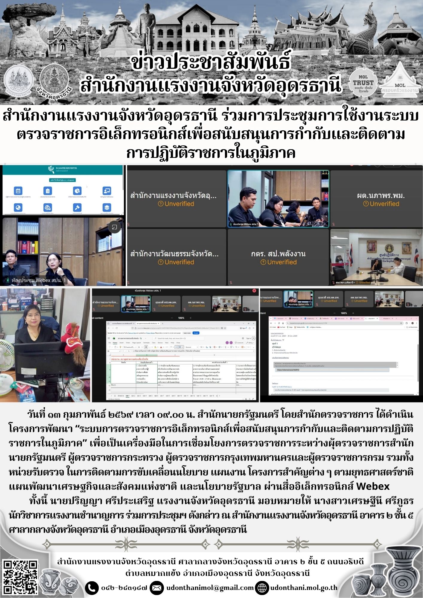 สำนักงานแรงงานจังหวัดอุดรธานี ร่วมการประชุมการใช้งานระบบตรวจราชการอิเล็กทรอนิกส์เพื่อสนับสนุนการกำกับและติดตามการปฏิบัติราชการในภูมิภาค